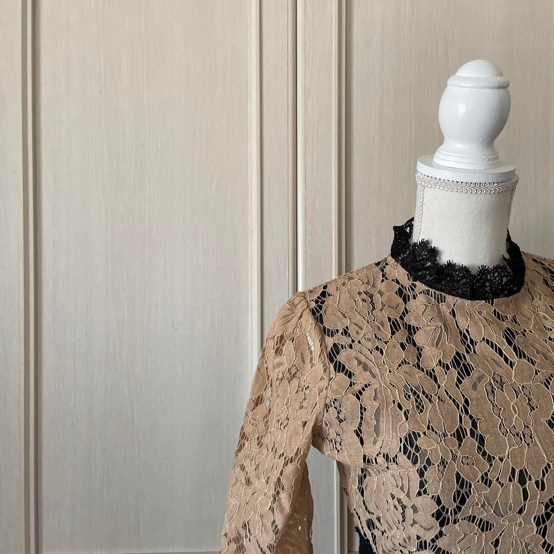 15 花柄 ワンピース シャツ ロング レース デート 可愛い ハイネック