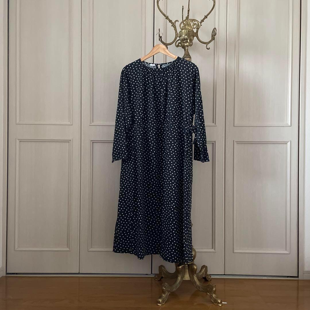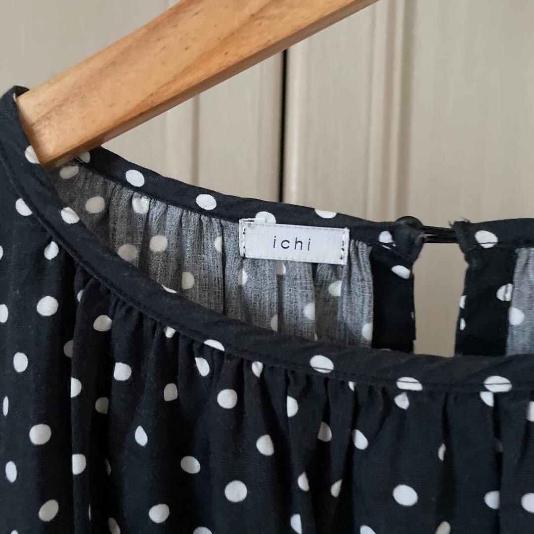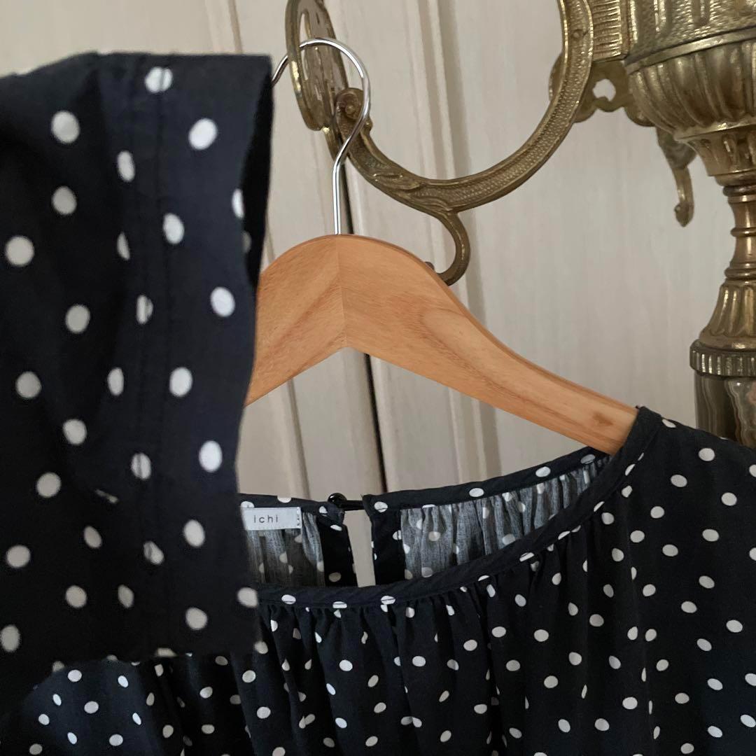 55 イチ ichi ドット 水玉 ワンピース シャツ ロング 長袖 黒 白
