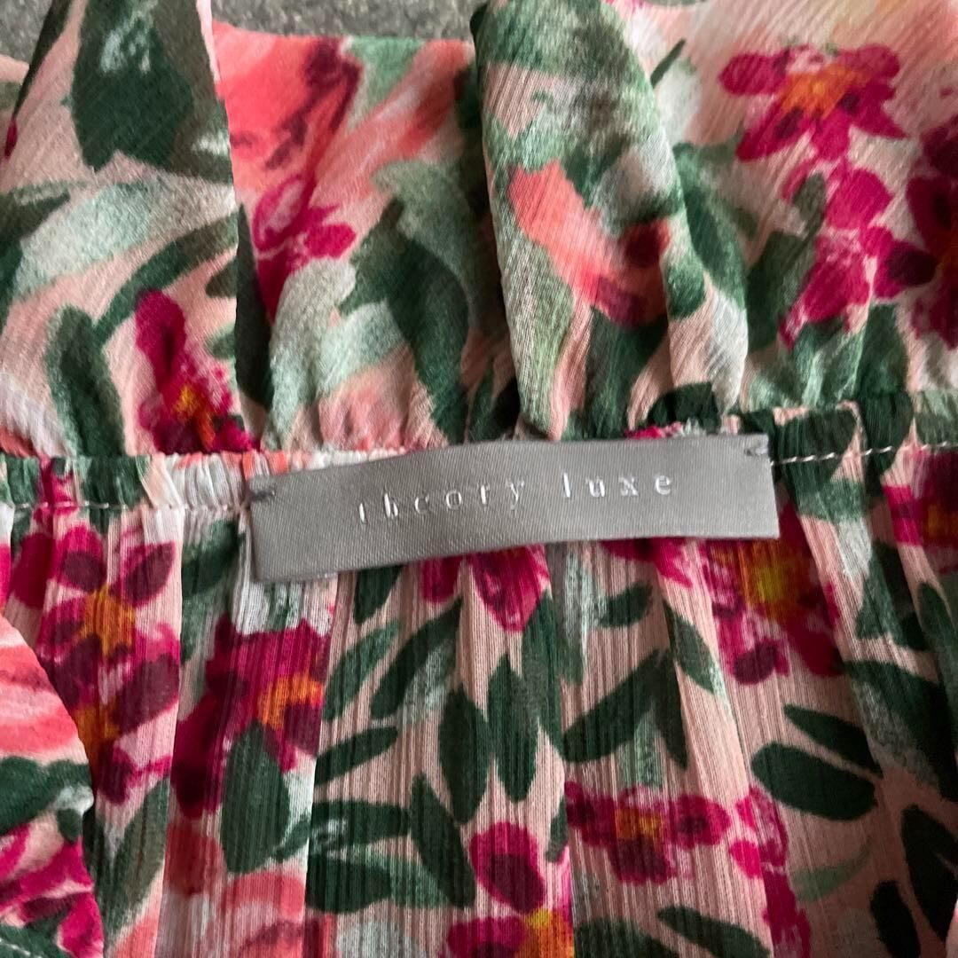 3 セオリー リュクス 花柄 シャツ ハイネック ブラウス 長袖 ピンク