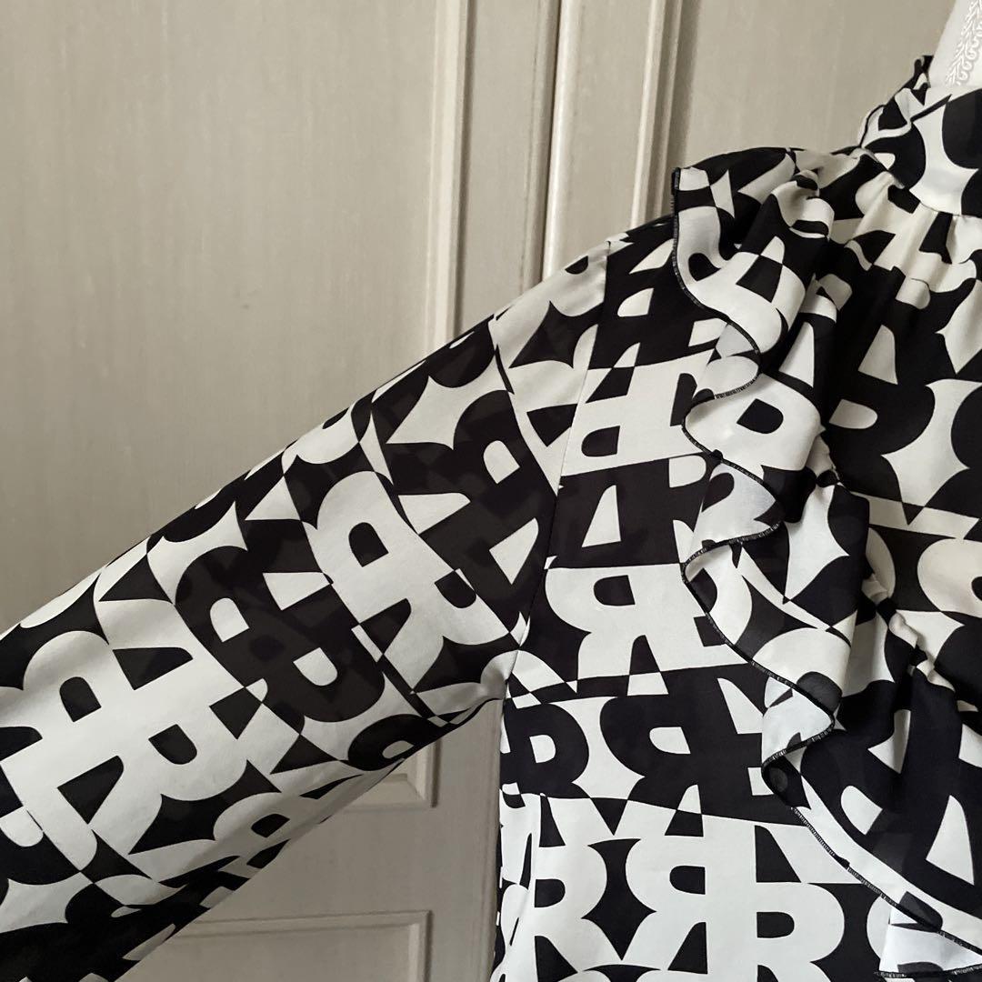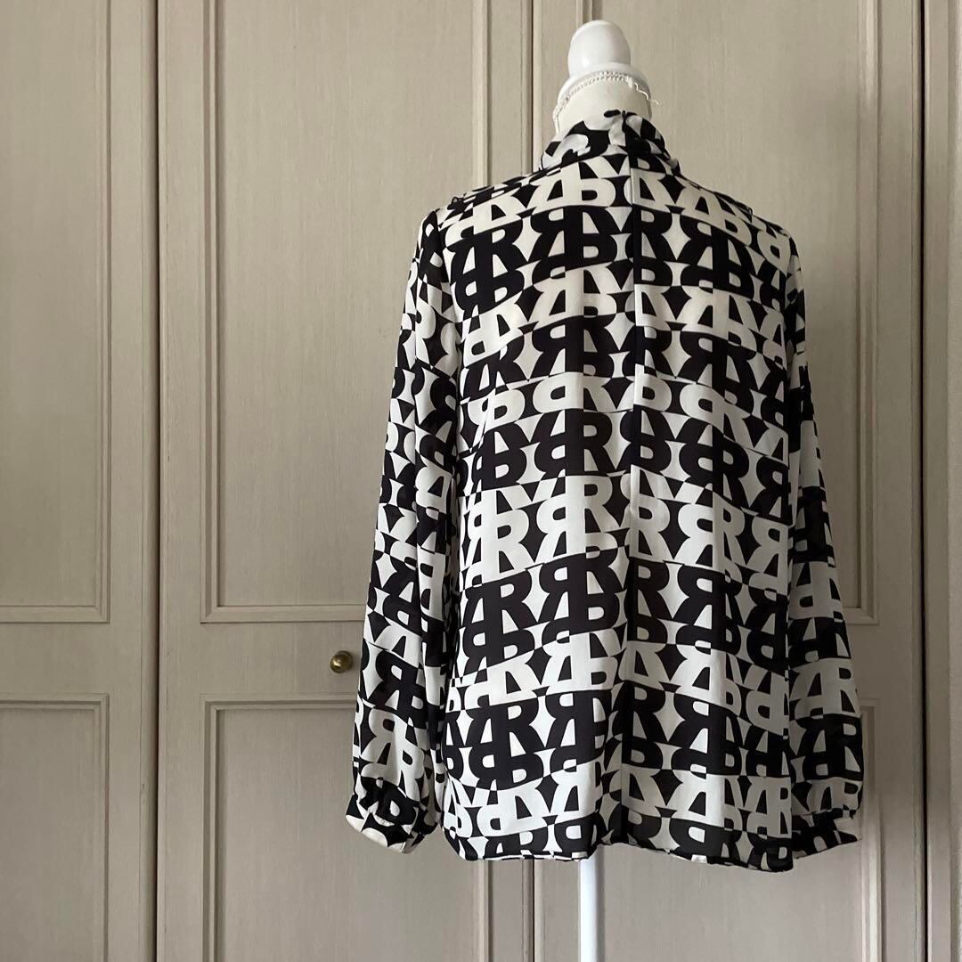 wb メルローズ 総柄 ブラウス シャツ トップス 白黒 シアー ハイネック