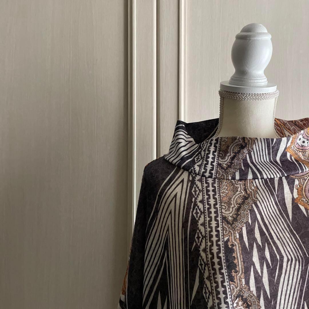 K 総柄 ハイネック 7分袖 インポート 上品 シャツ ブラウス