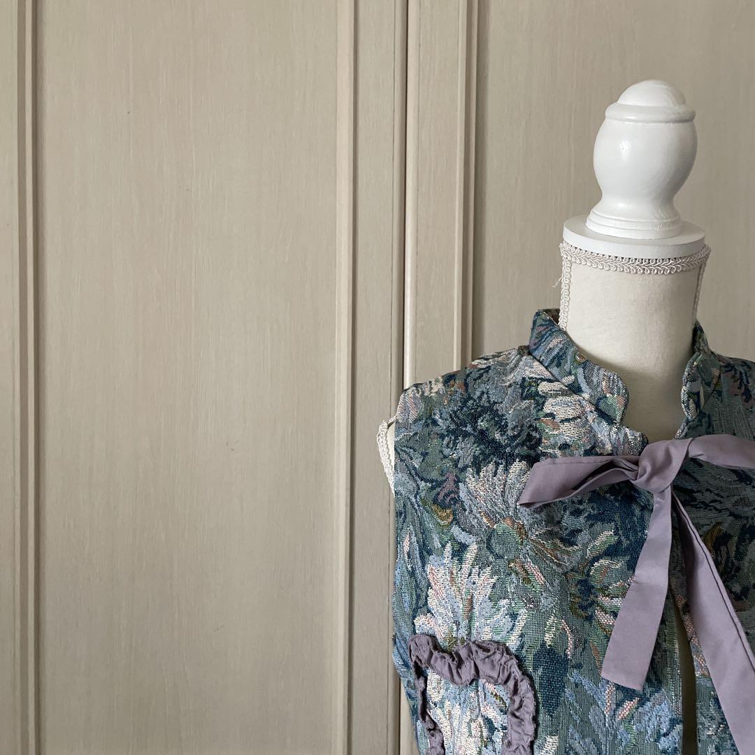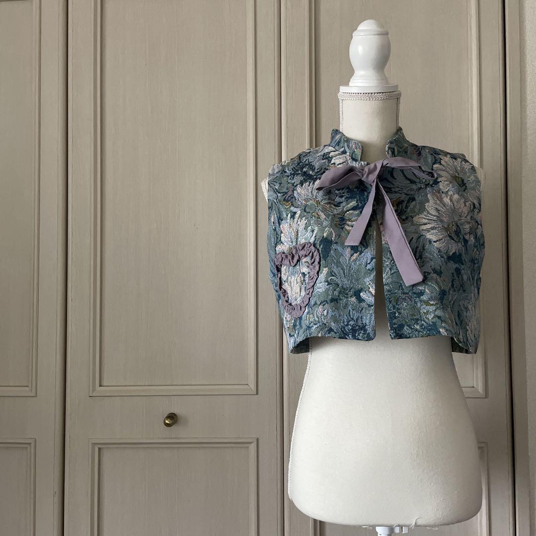 / ハート ジャガード ジレ ベスト リボン 花柄 総柄 ブラウス シャツ