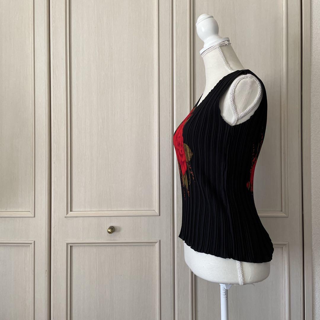 T 花柄 総柄 ブラウス シャツ トップス プリーツ ノースリーブ 薔薇