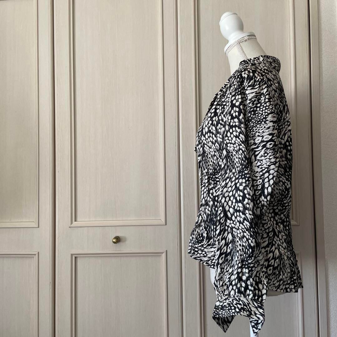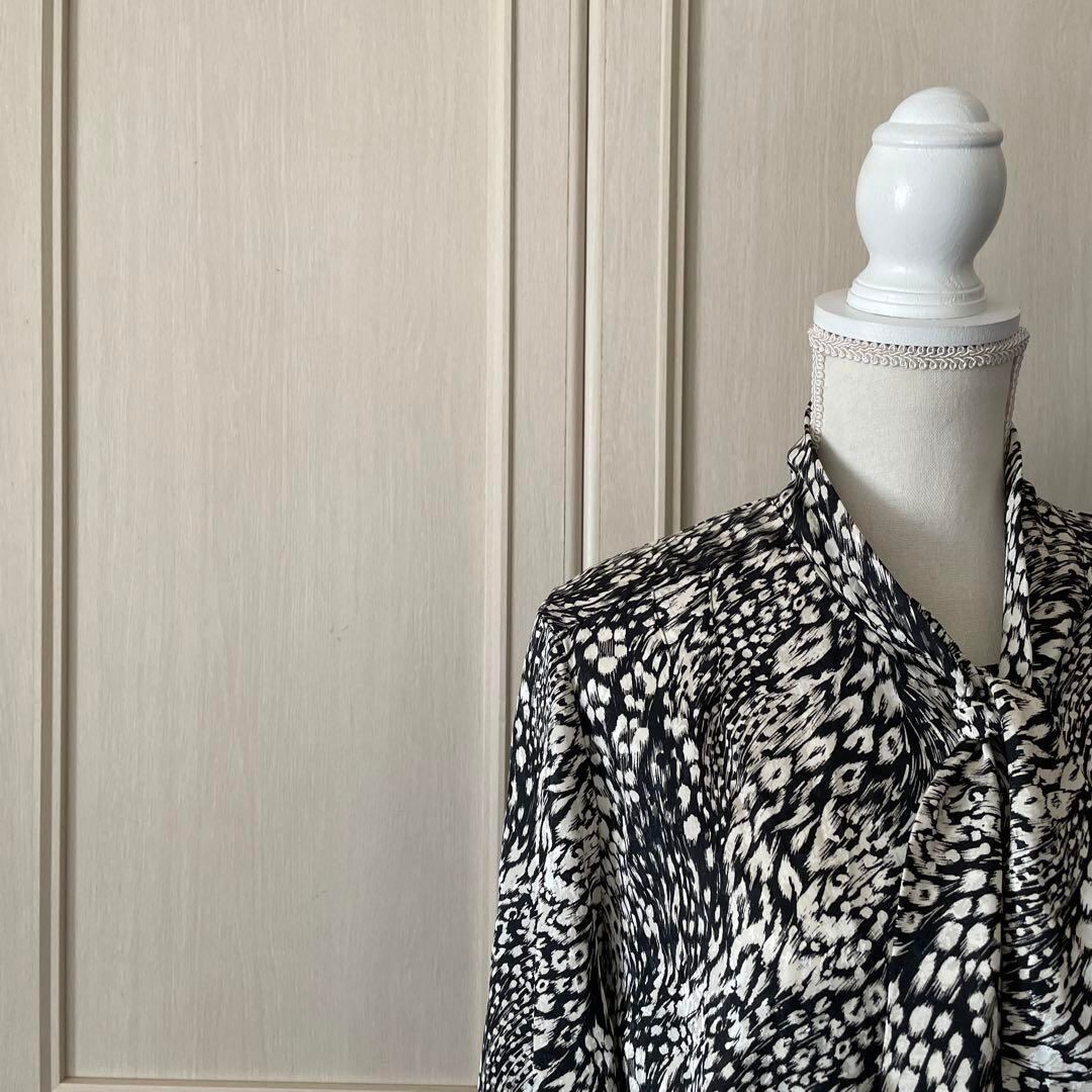 / 総柄 ボウタイ リボン ブラウス シャツ トップス 長袖 レトロ