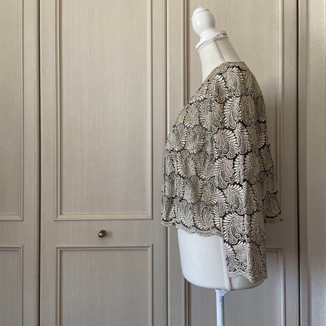 / レース 花柄 総柄 ブラウス シャツ 羽織り カーディガン 自身 ゴールド