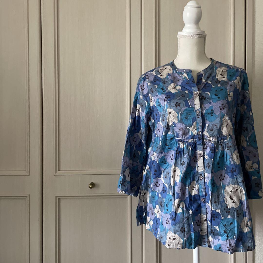 C savoire 花柄 総柄 ブラウス シャツ トップス 青 ブルー