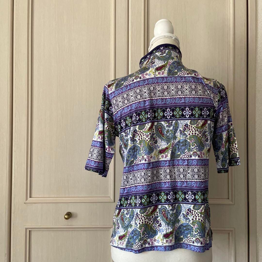 26 ハイネック 半袖 花柄 総柄 ブラウス シャツ トップス 上品