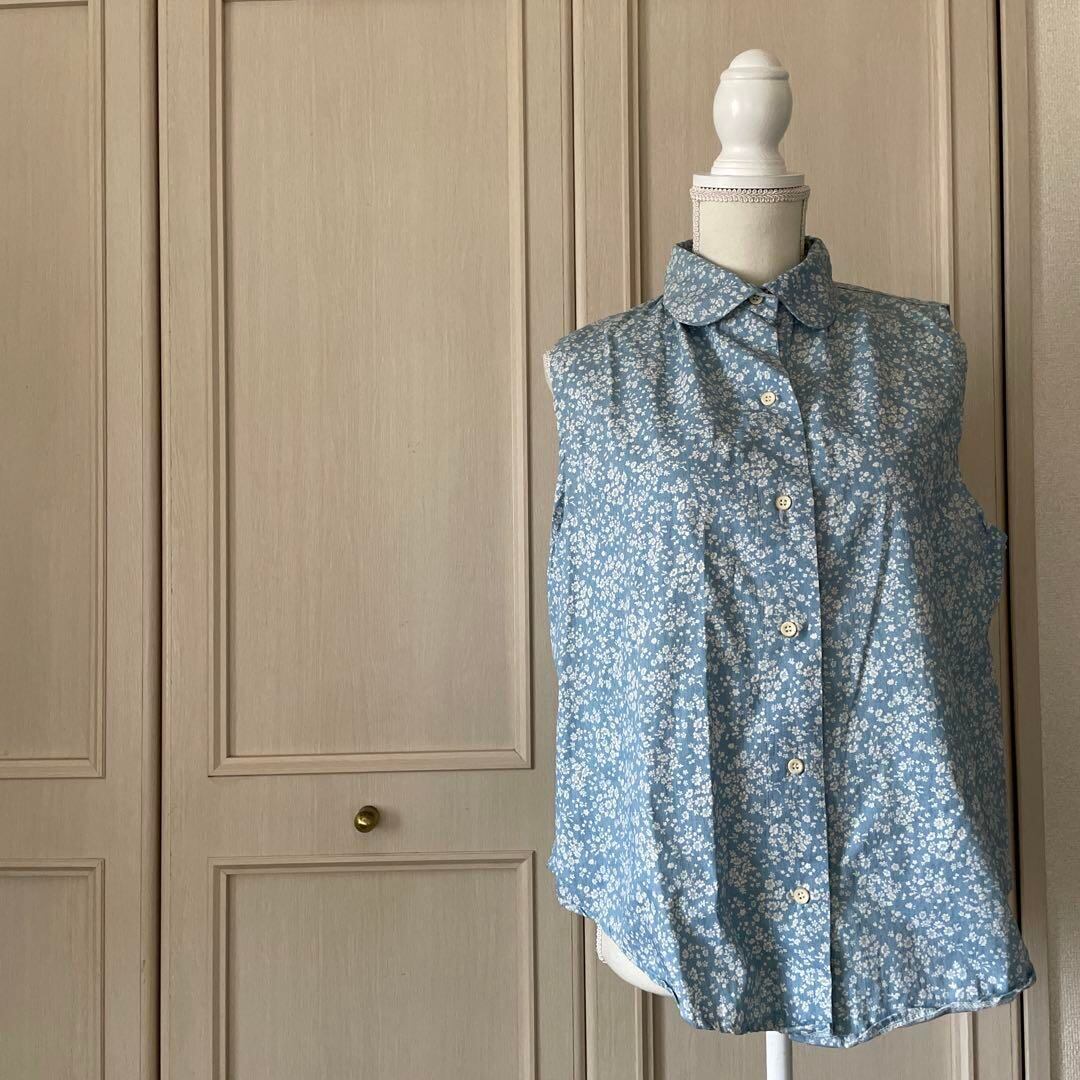 26 花柄 総柄 丸襟 ノースリーブ ブラウス シャツ トップス