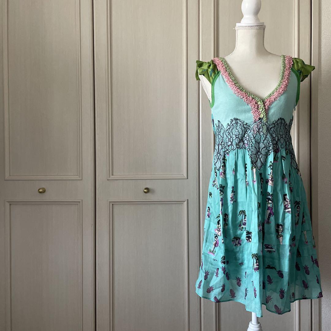 5 花柄 刺繍 ワンピース シャツ ノースリーブ レース