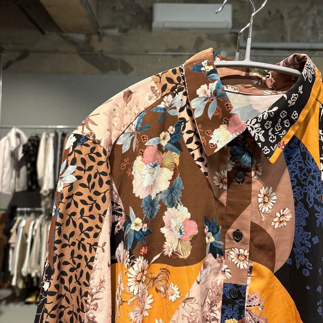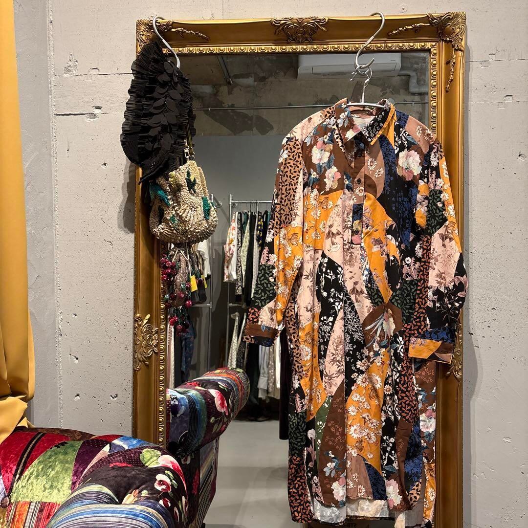 @ アンティカ antiqua 総柄 花柄 ワンピース シャツ ロング 長袖