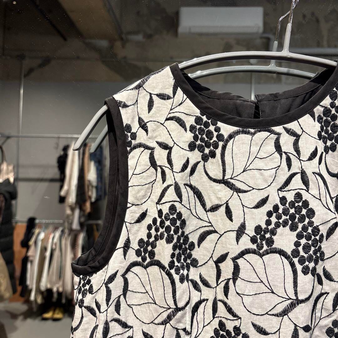 @ ストロベリーフィールズ 刺繍 花柄 ワンピース ドレス ノースリーブ リボン