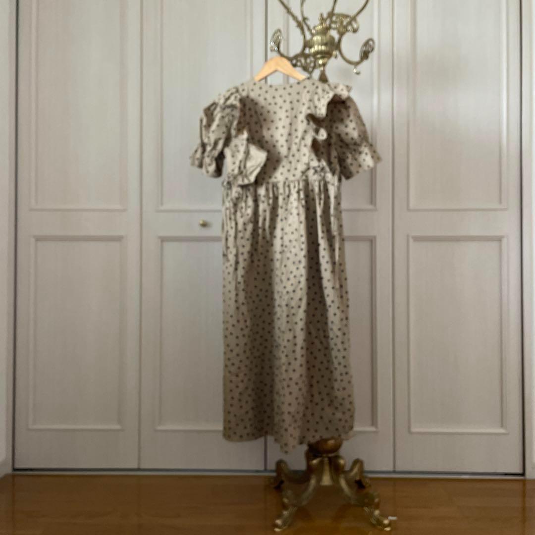 P ドット 水玉 ワンピース ロング 韓流 ブラウス シャツ フリル 可愛い