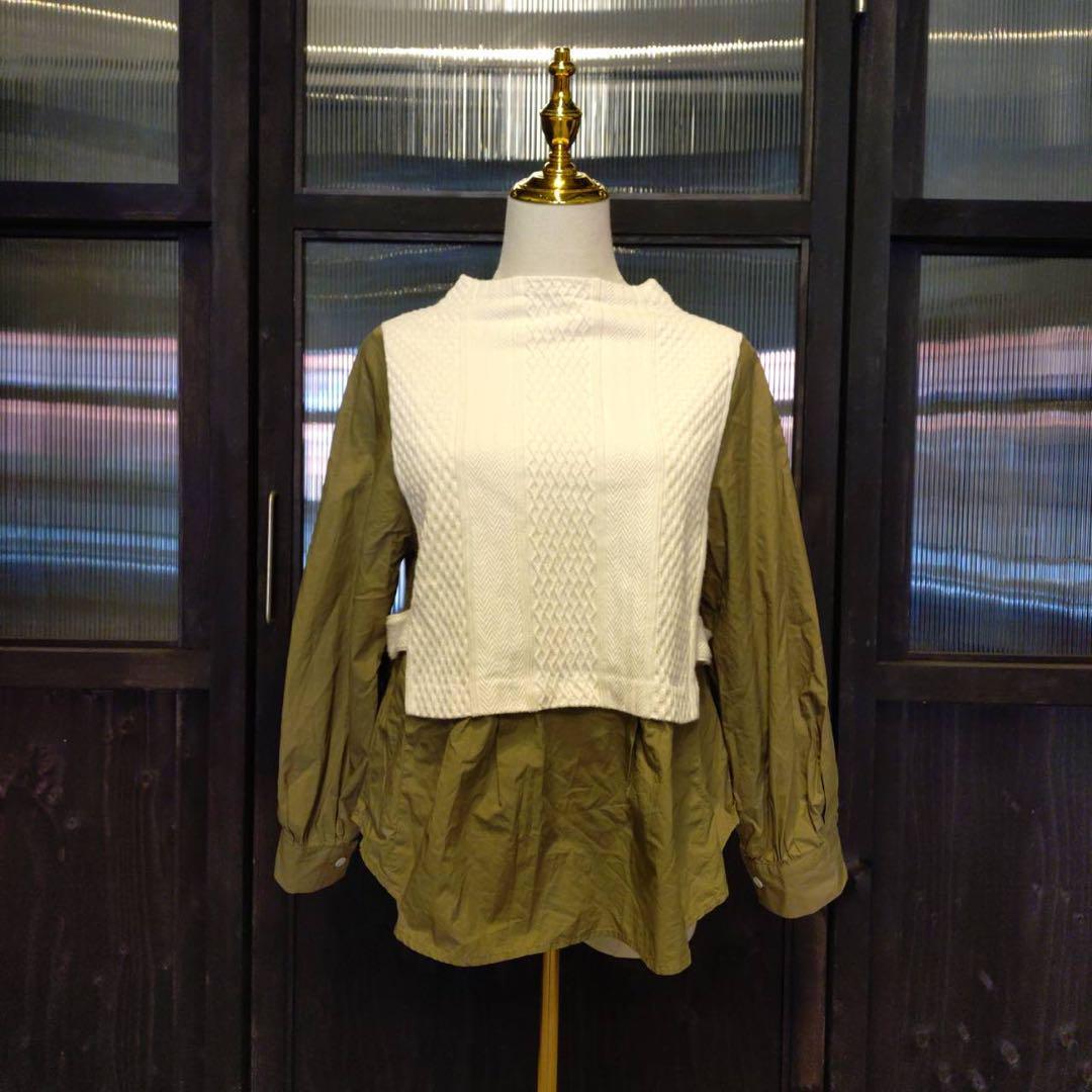 @ レイヤード ハイネック ニット ケーブル ブラウス シャツ トップス