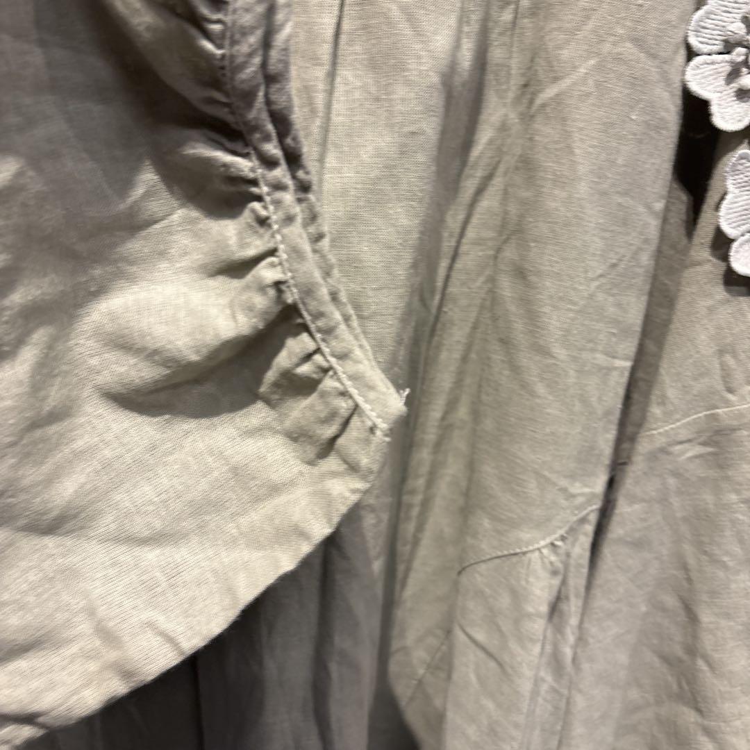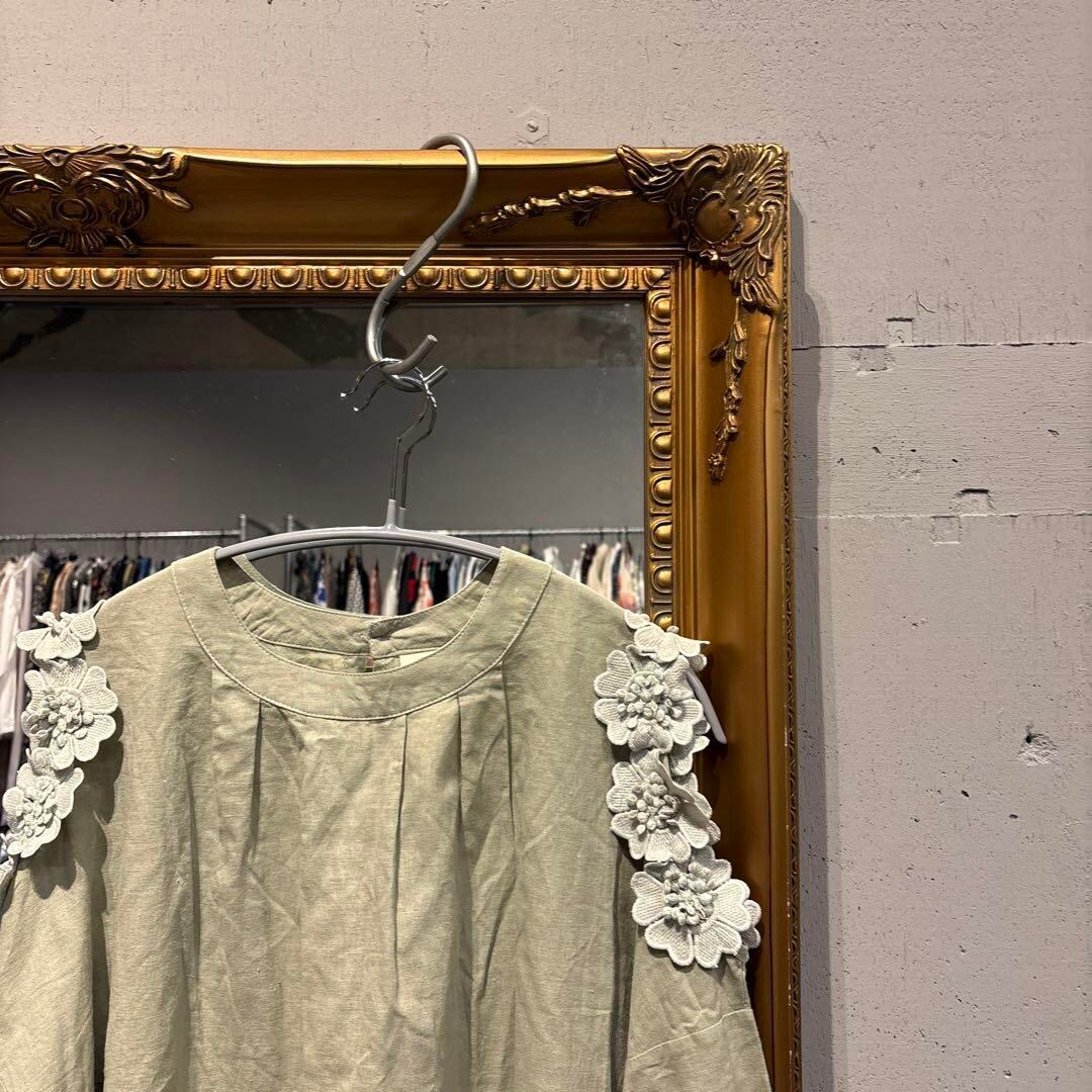 @ 刺繍 花柄 肩出し ワンピース シャツ ロング リネン フレンチ