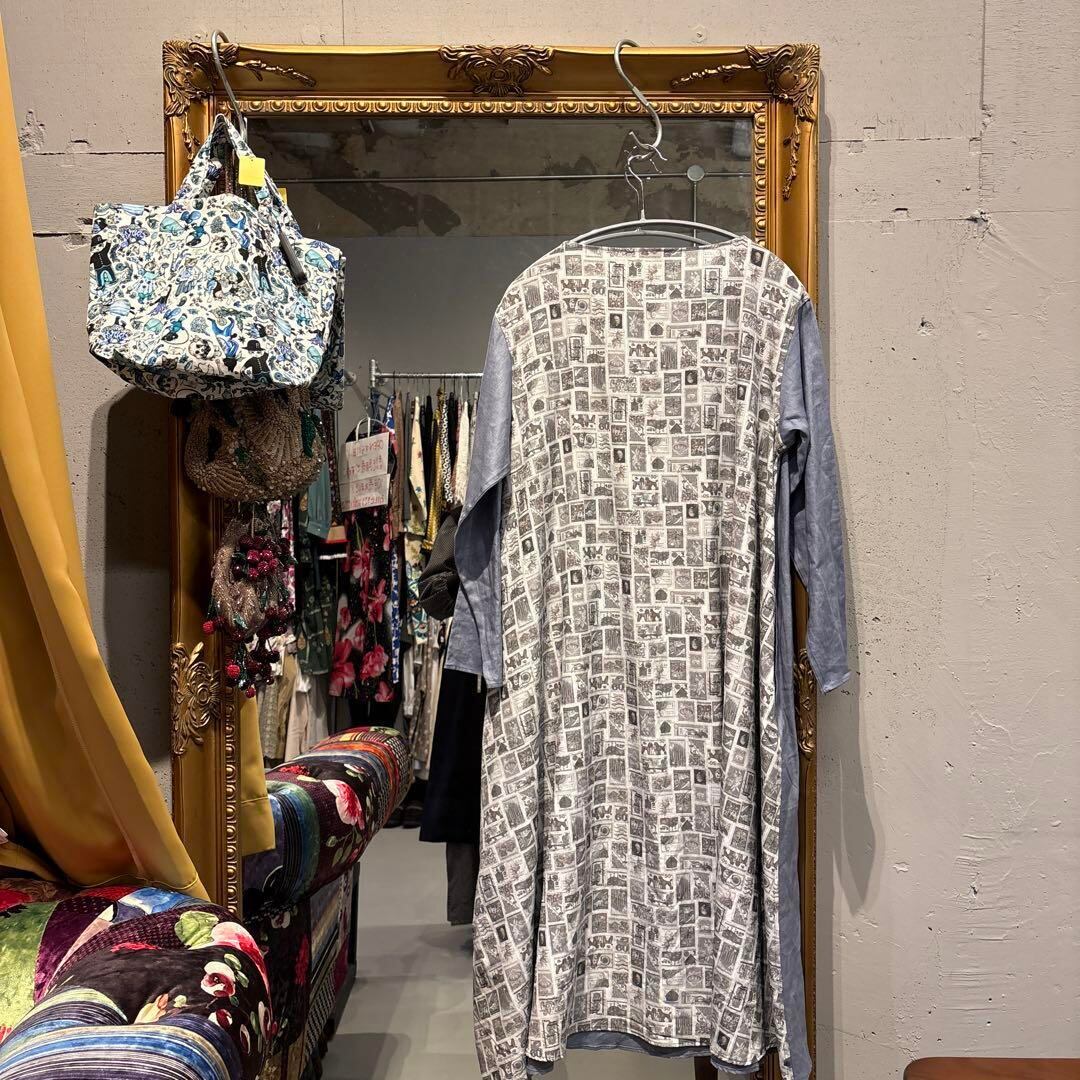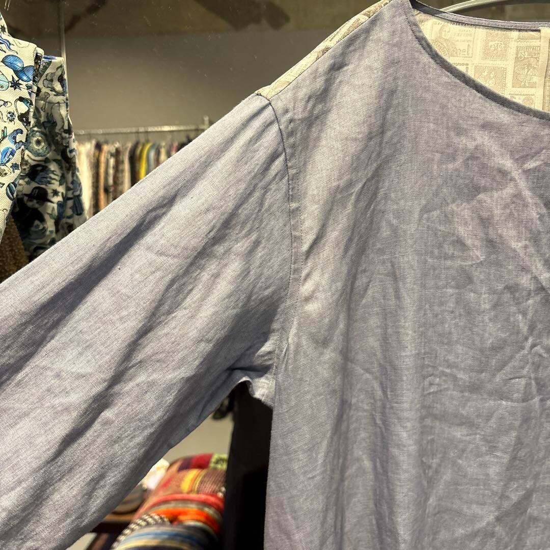 @ ビアズリー BEARDSLEY 総柄 リネン ワンピース シャツ ロング