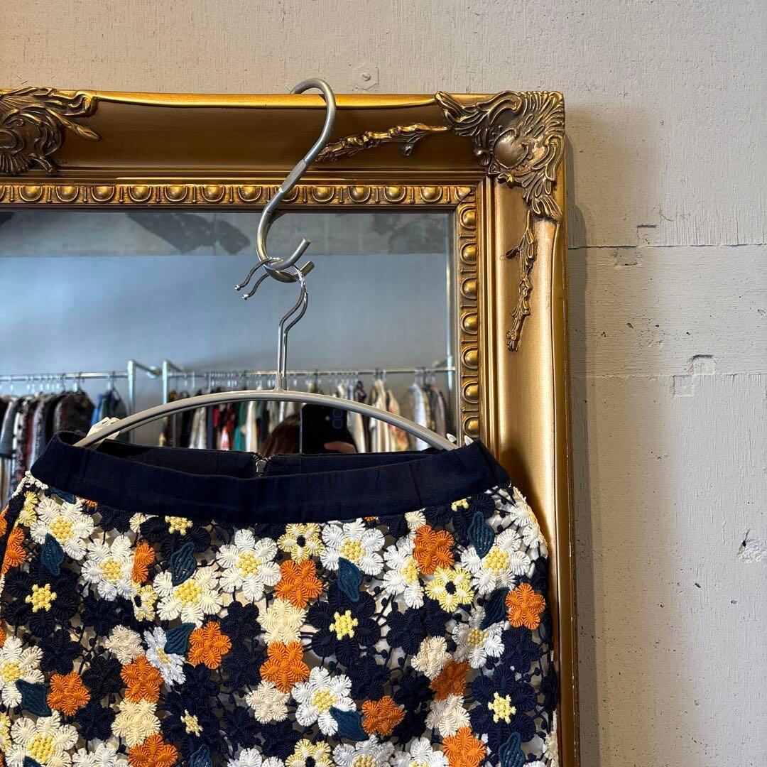 @ ドゥクラッセ DoCLASSE 花透かし彫り 刺繍 スカート