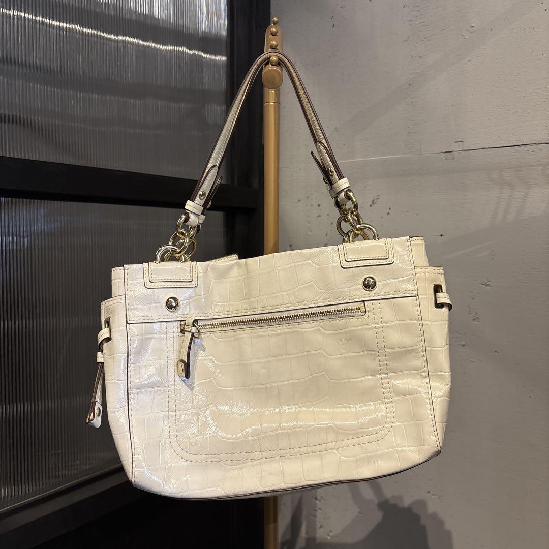 @ coach コーチ エナメル 型押し ホワイト トート ハンド バッグ