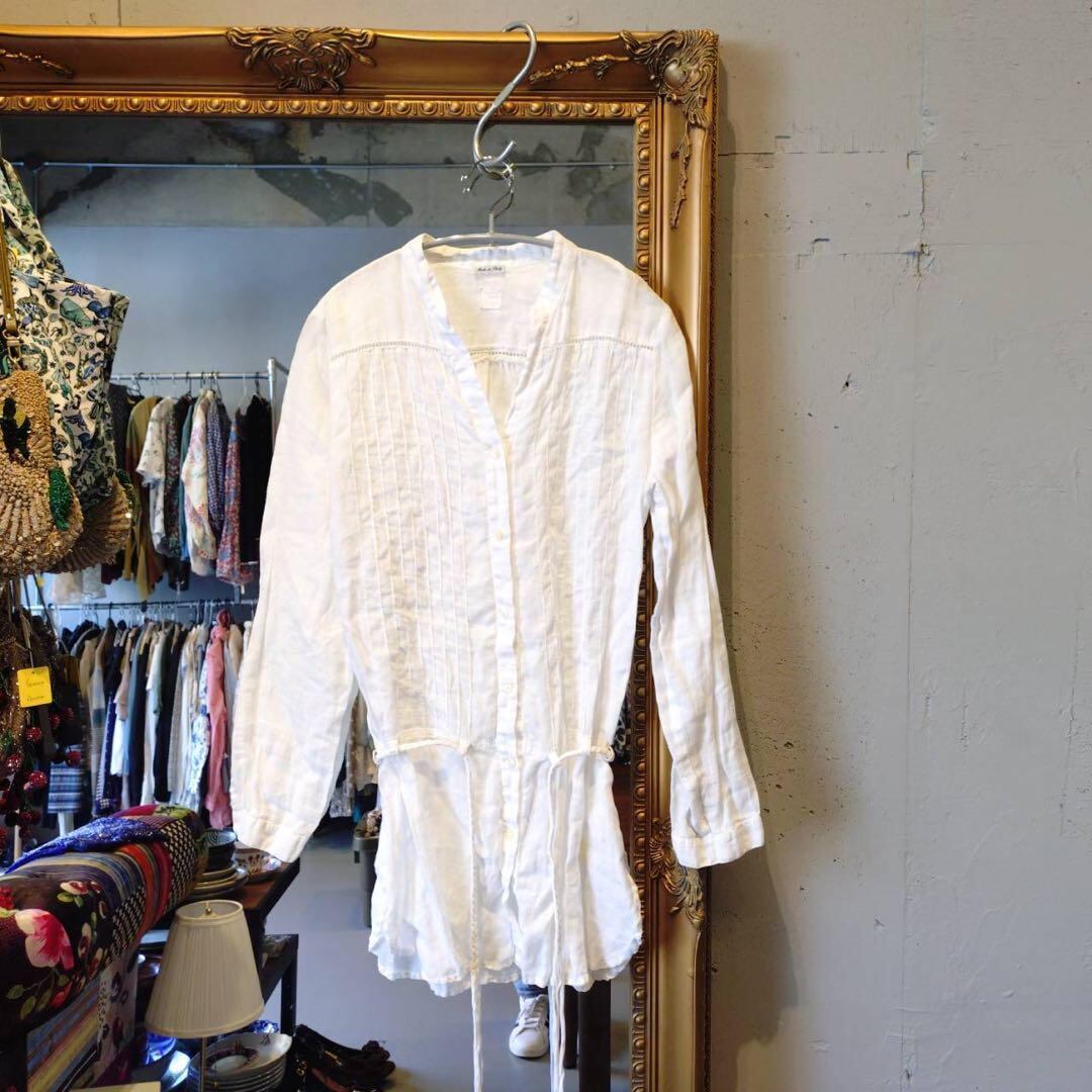 @ 100%lino リネン 麻 ブラウス シャツ トップス チュニック 白