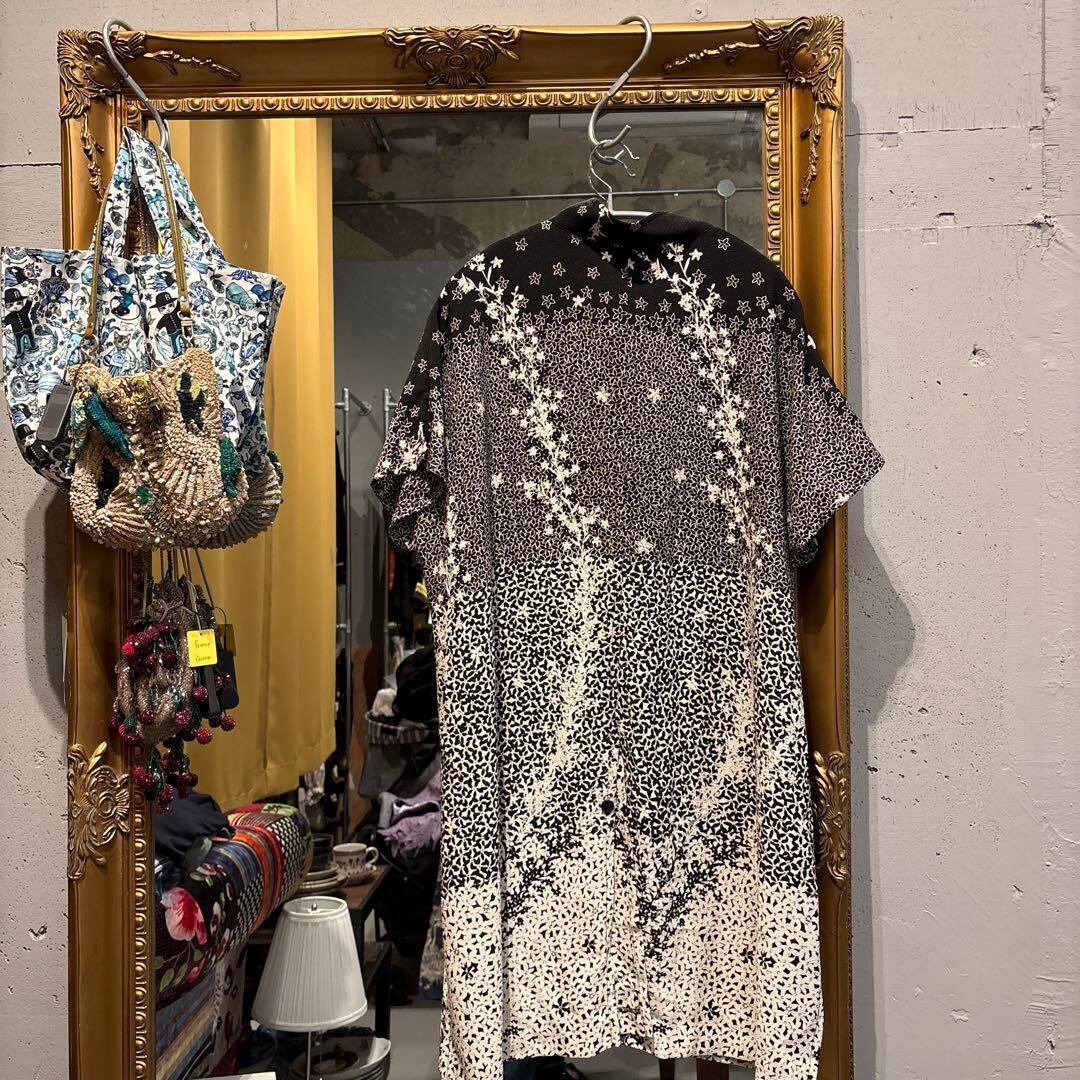 @ 縮緬 ちりめん 花柄 ワンピース シャツ ロング エレガンス