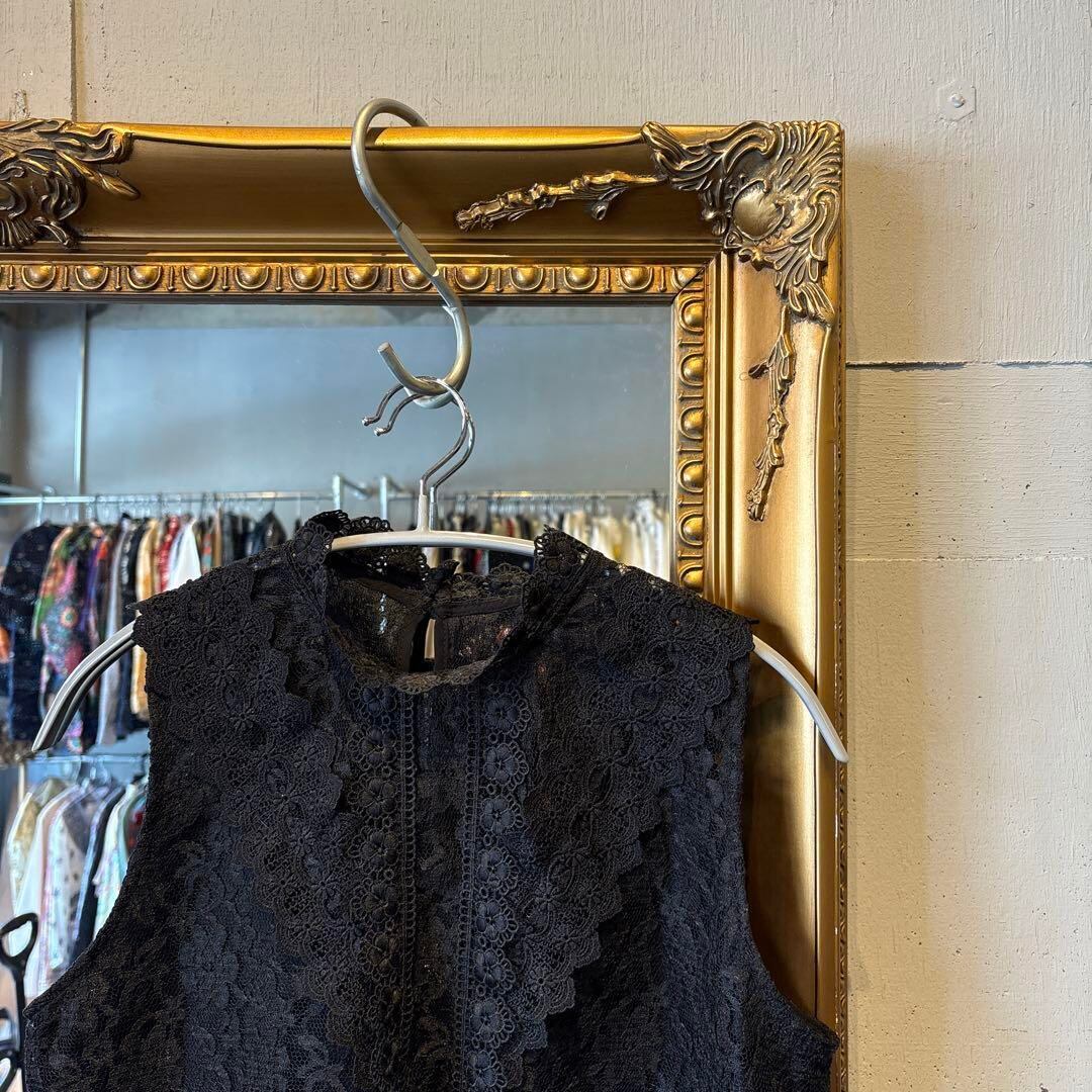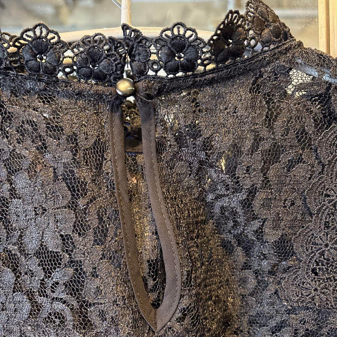 @ レース 刺繍 ノースリーブ 花柄 総柄 ブラウス シャツ トップス 黒