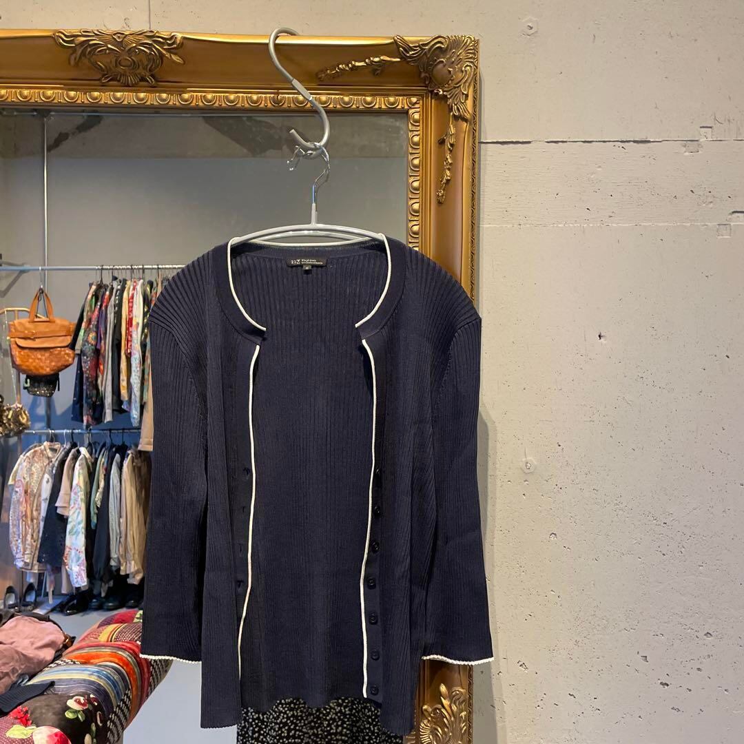 @ 23区 ニジュウサンク カーディガン バイカラー 七分袖 ネイビー