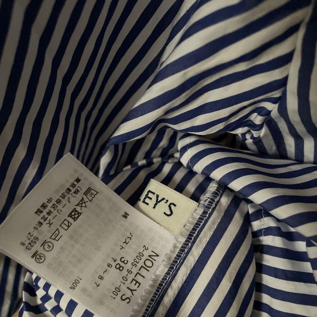 4 ノーリーズ NOLLEY'S パール ブラウス シャツ ストライプ 青