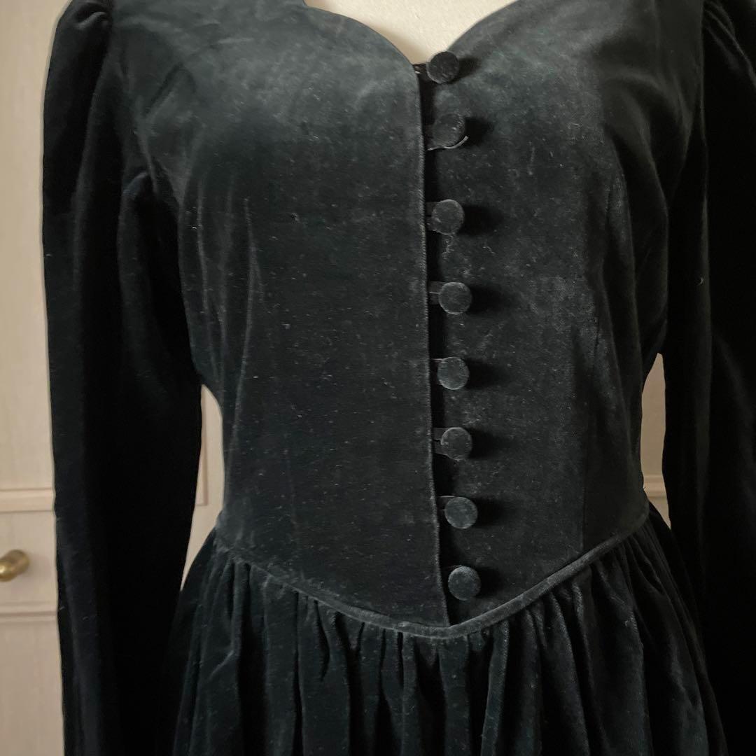 A ローラアシュレイ LAURAASHLEY 黒 ベロア ワンピース ロング