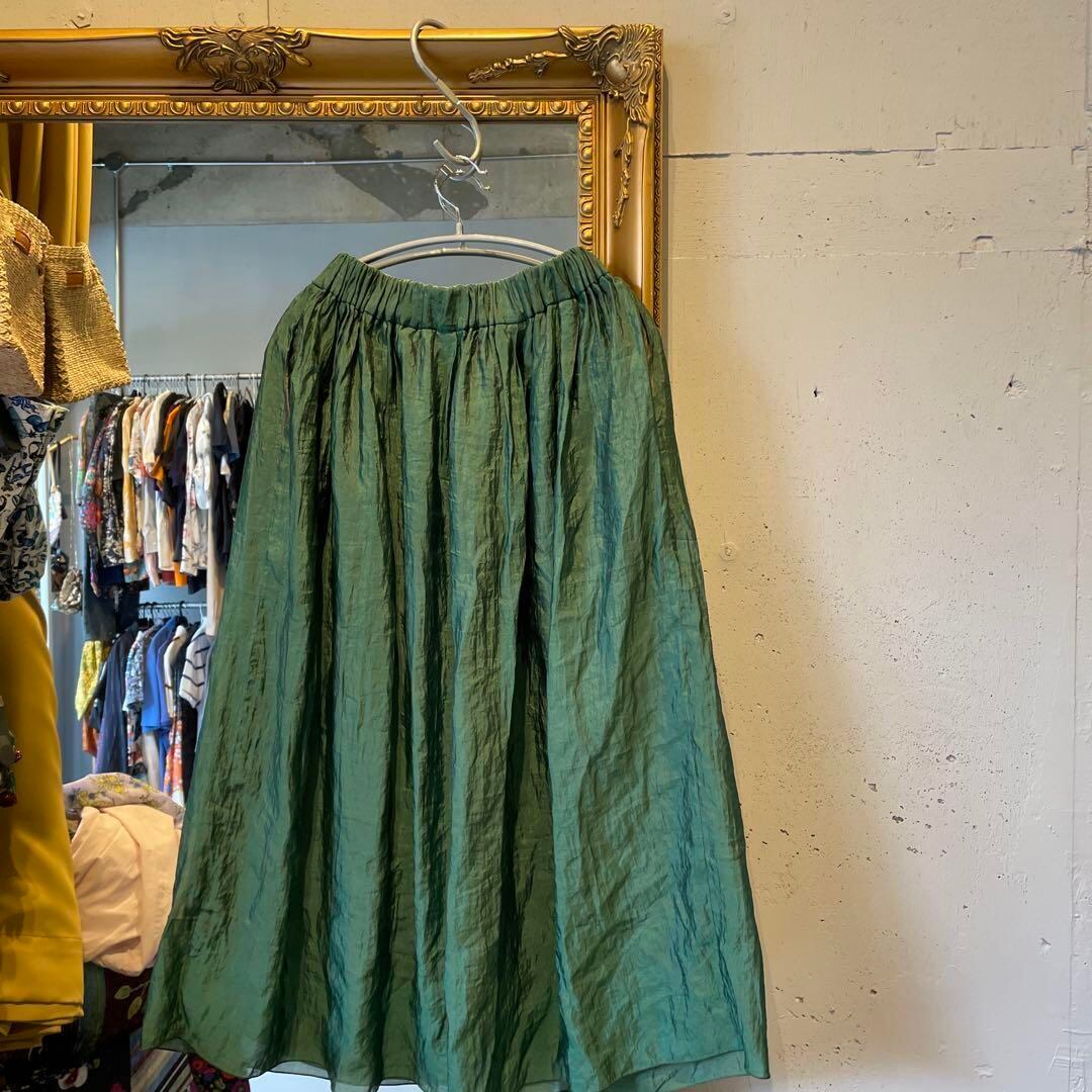 @ サクラ SACRA ロング スカート シルク グリーン 無地 シフォン