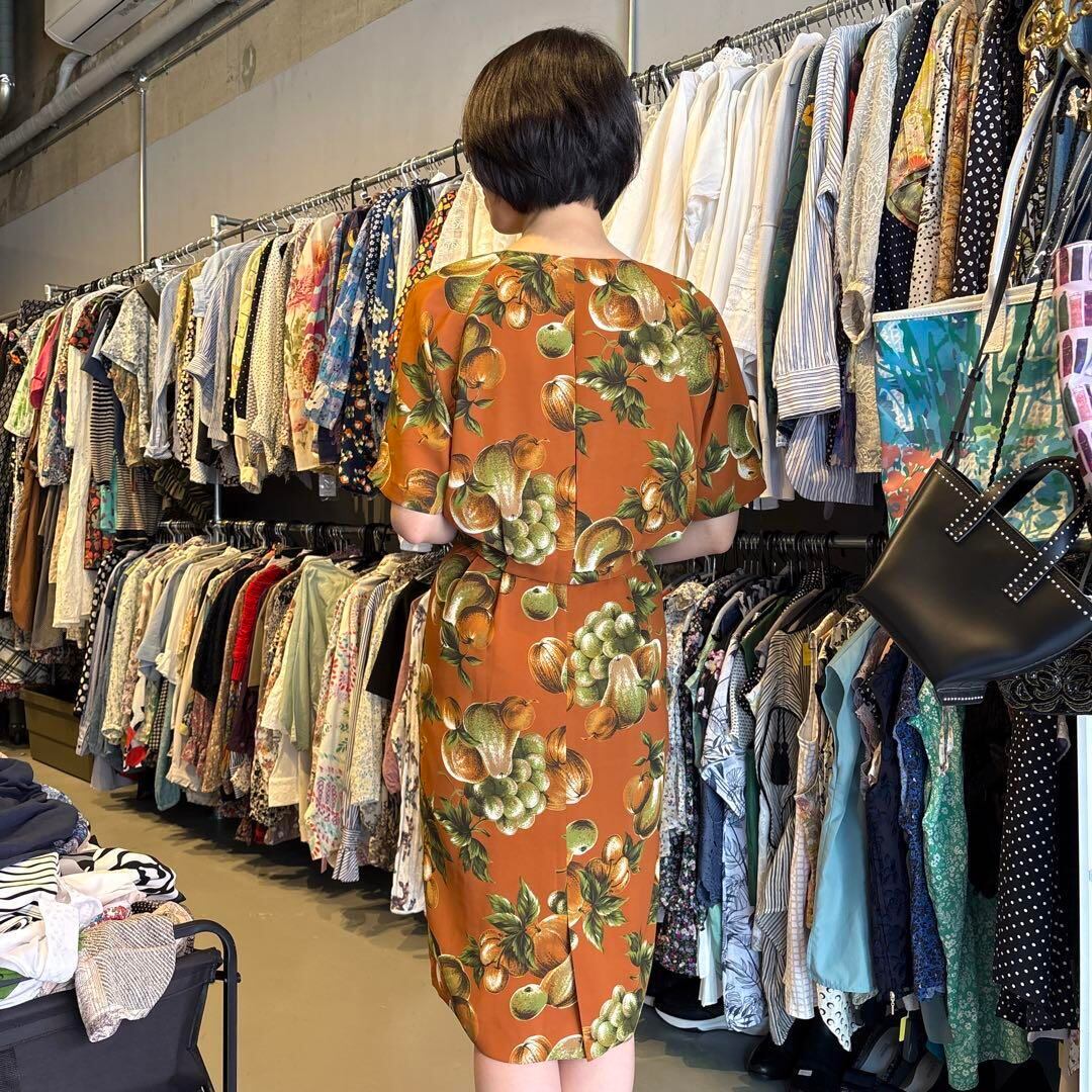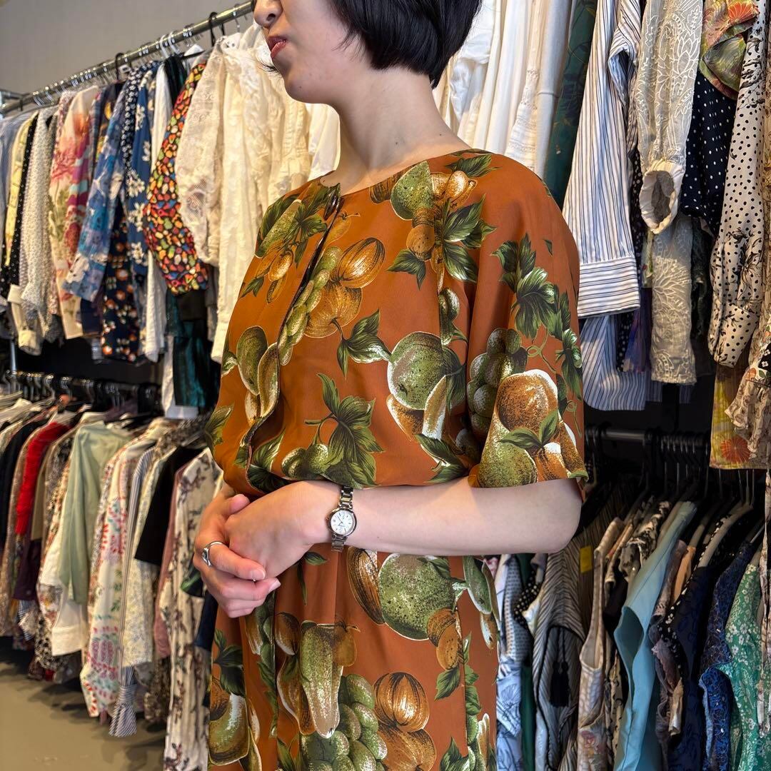 @ レトロ 花柄 フルーツ柄 ワンピース かわいい グリモワール ロング 半袖