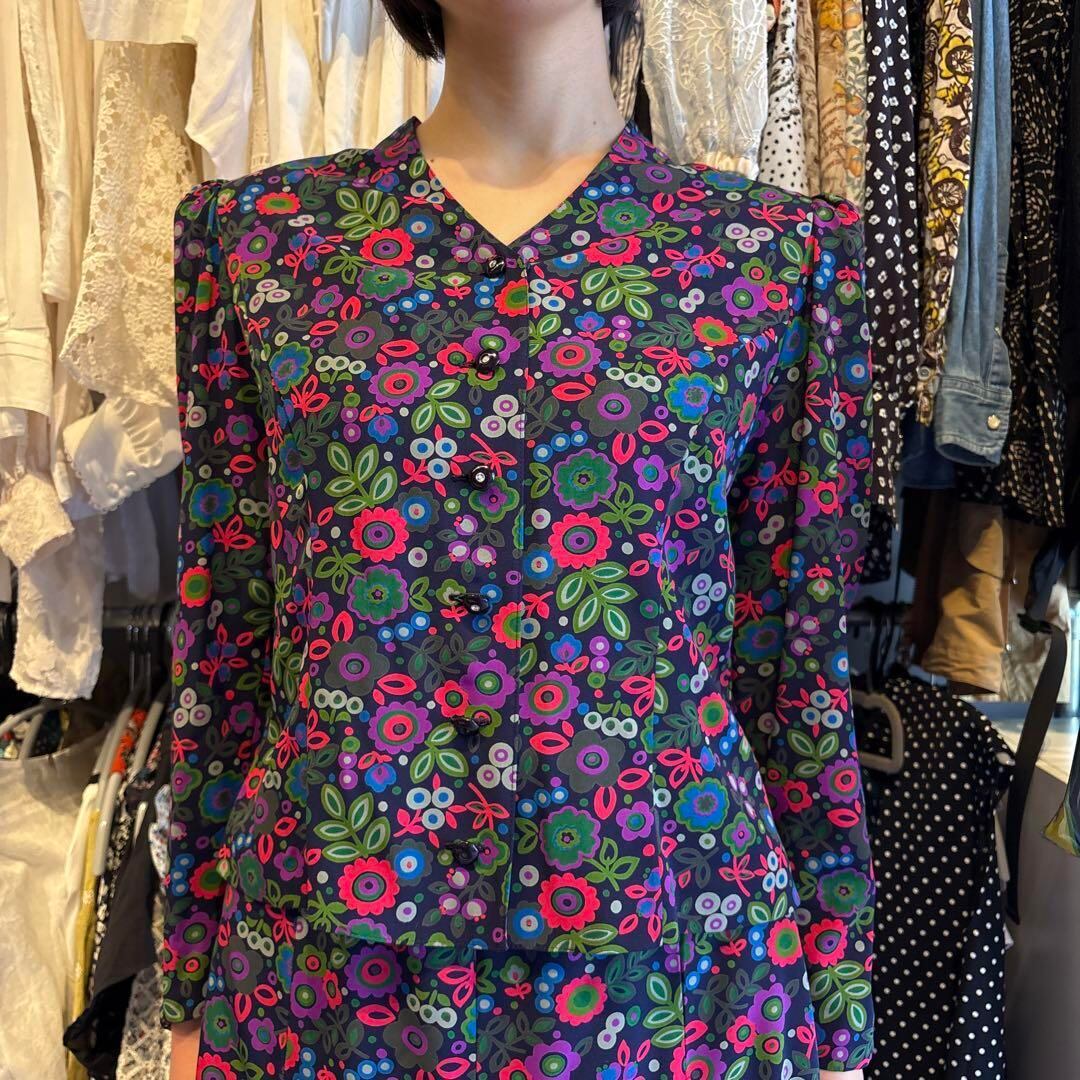 @ レトロ ヴィンテージ 花柄 総柄 セットアップ ブラウス シャツ スカート