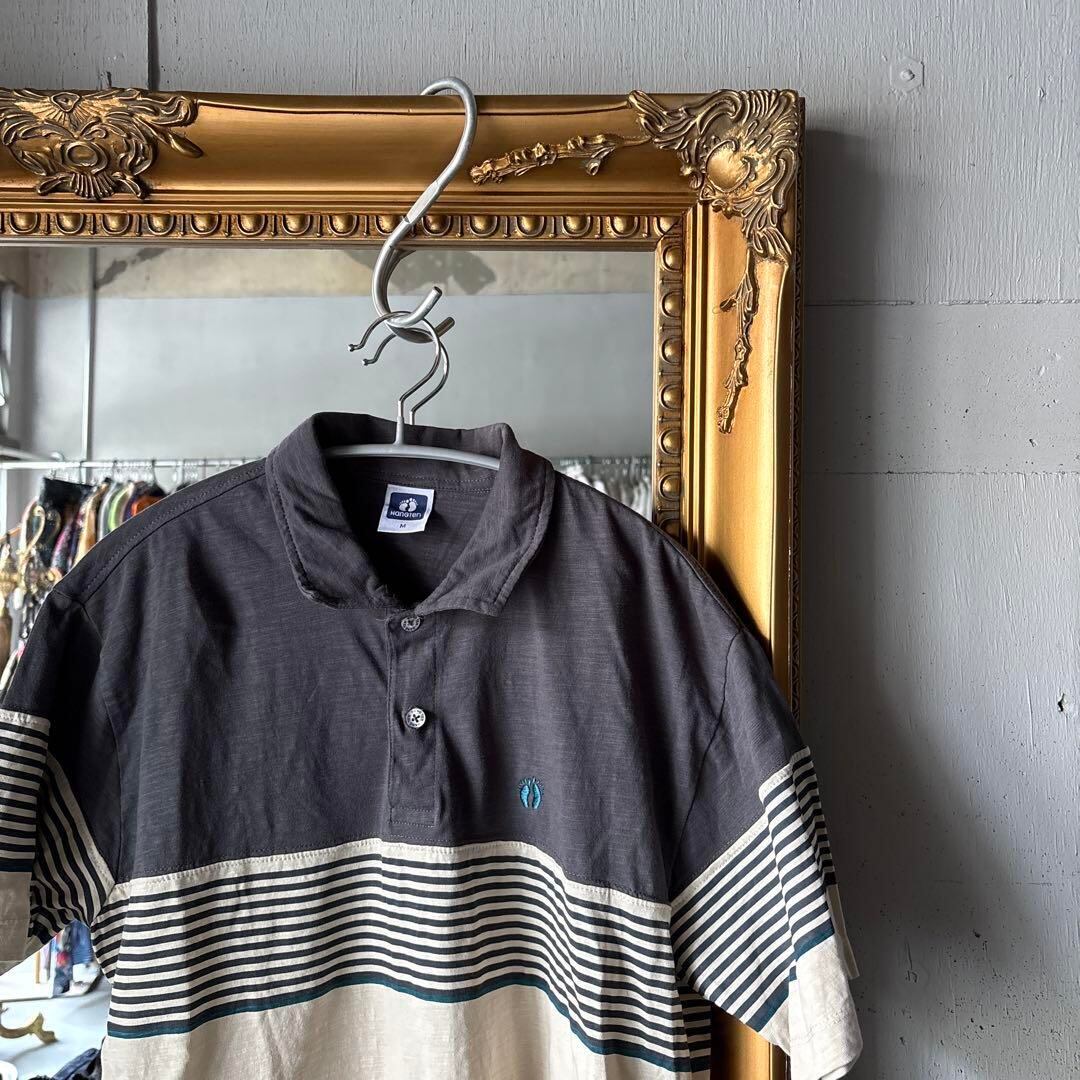 @ ハンテン hangten 半袖 メンズ シャツ ポロ 柄シャツ コットン