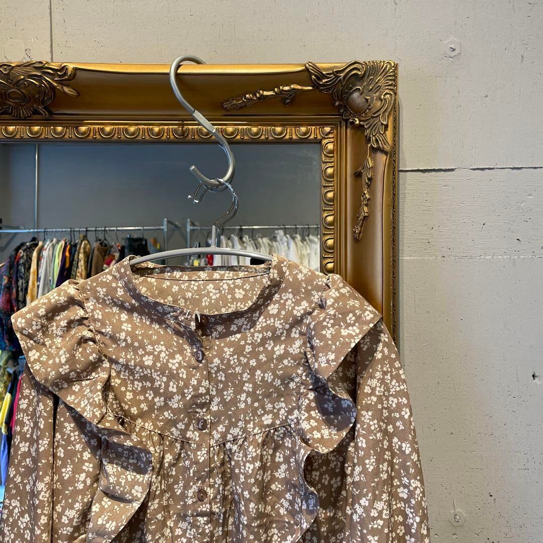 H@ フリル 花柄 総柄 バンドカラー ブラウス シャツ 長袖 可愛い