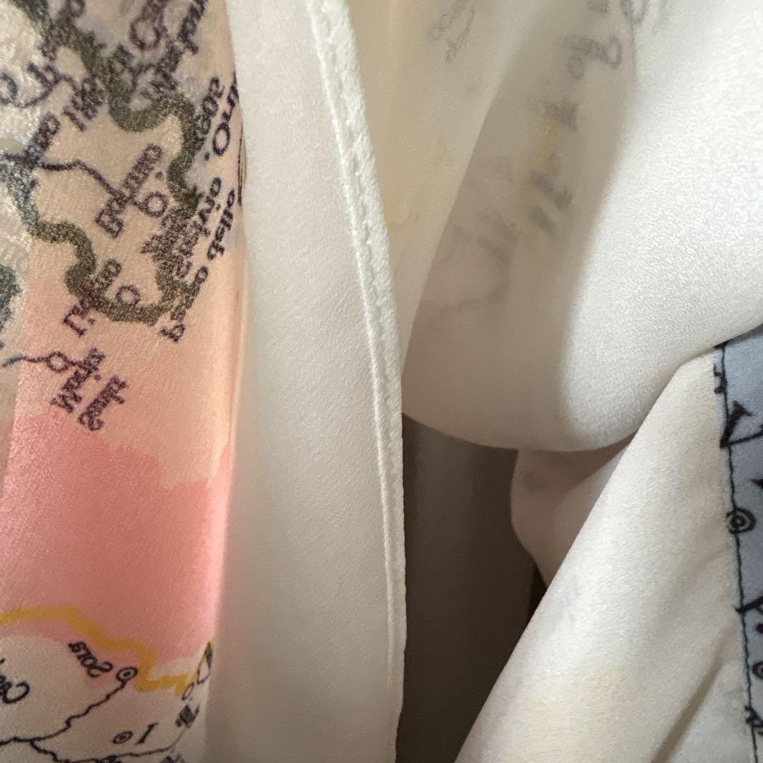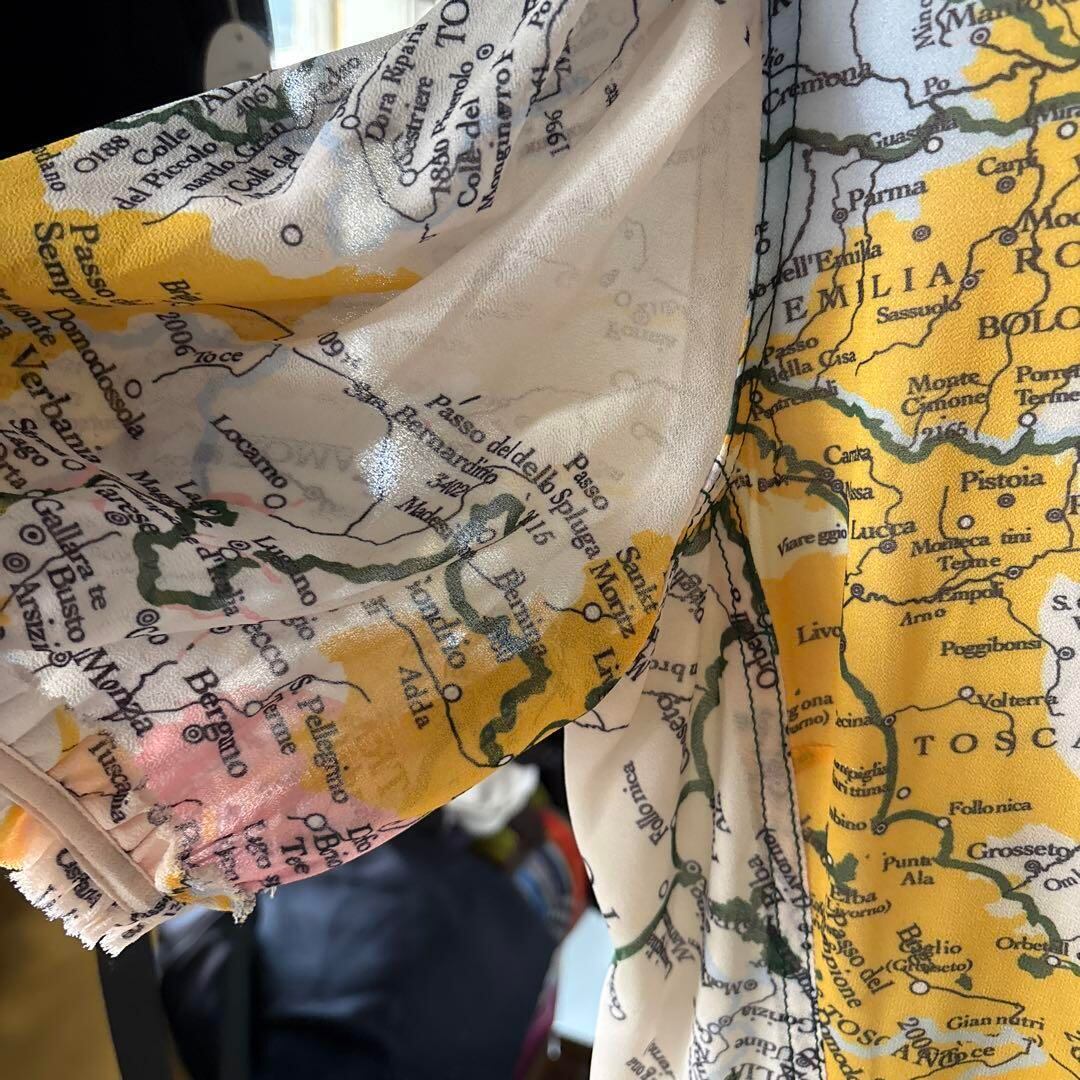 @ フリル リボン 地図柄 ワンピース シャツ ロング 半袖 マキシ