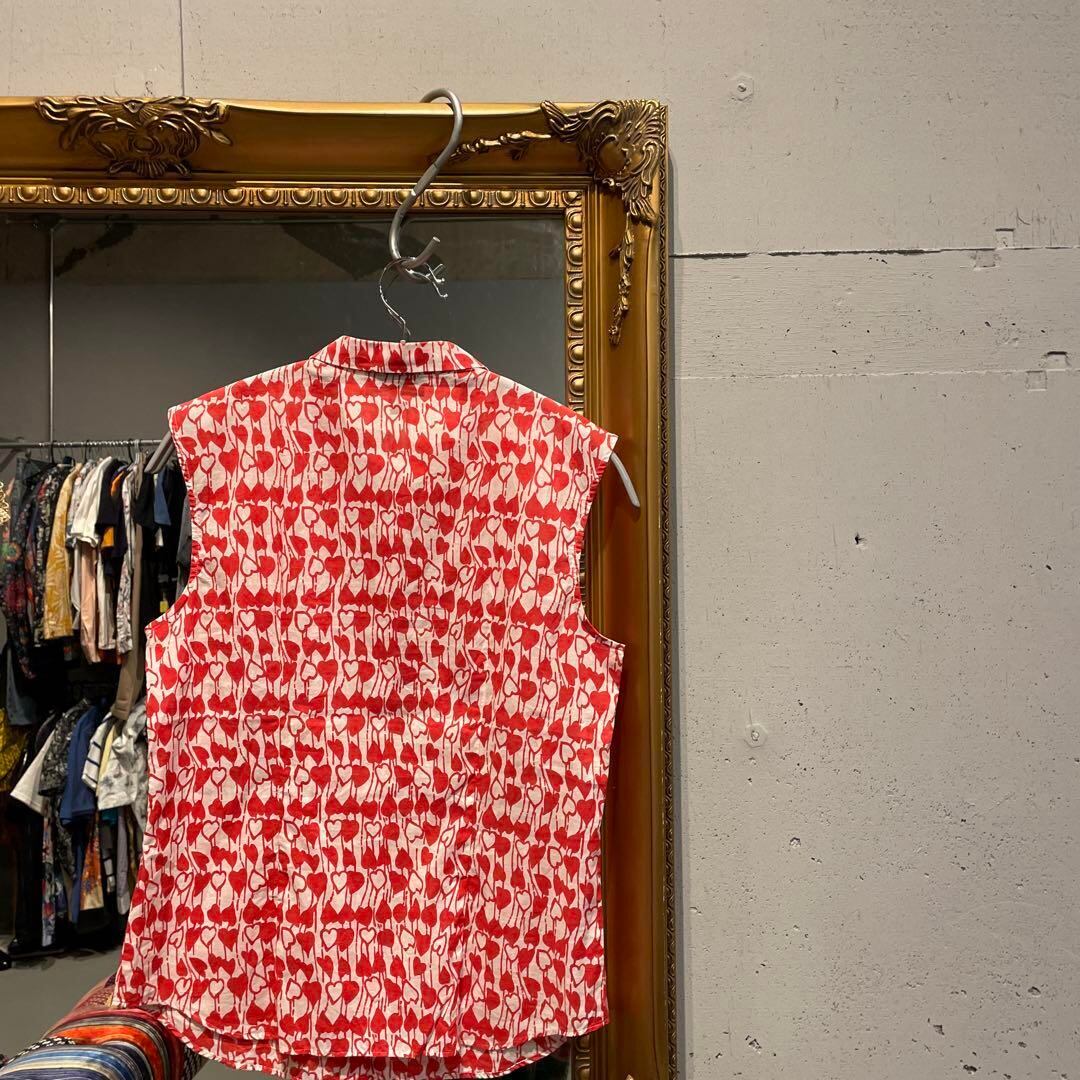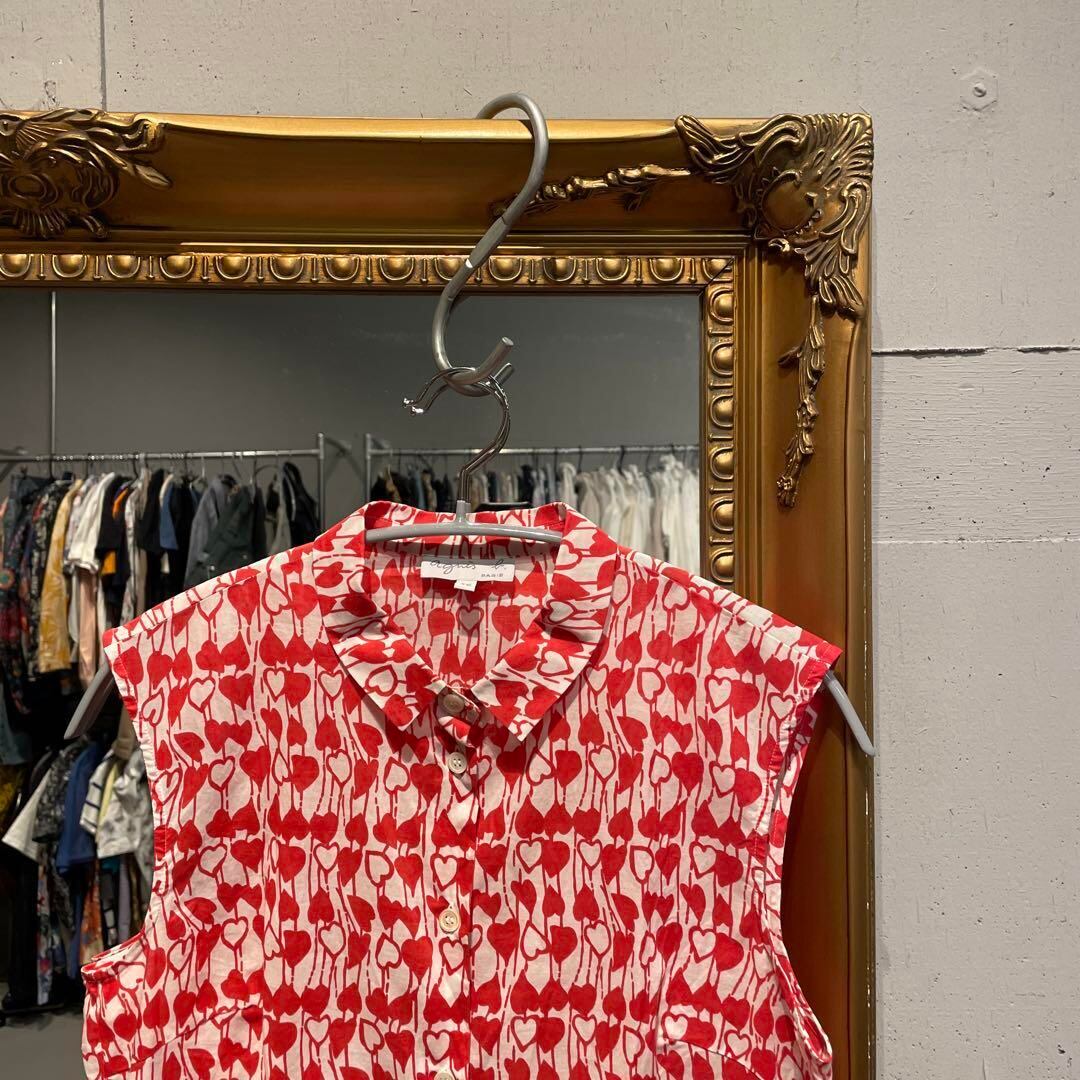 @ Agnesb アニエスベー ハート 総柄 ブラウス シャツ トップス 赤白