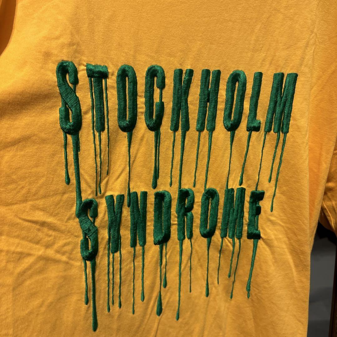 @ ストックホルムシンドローム 刺繍 黄 緑 半袖 シャツ Tシャツ コットン