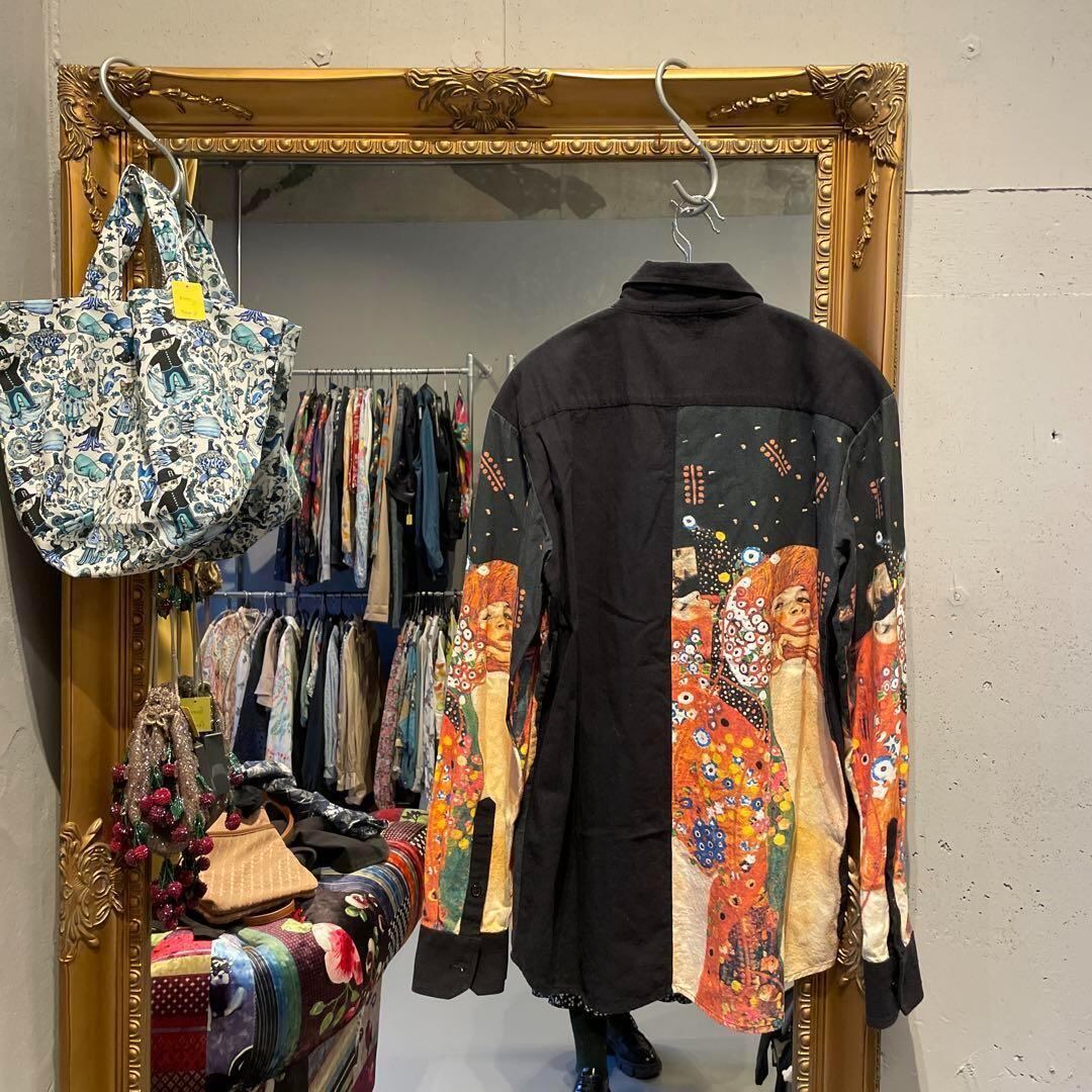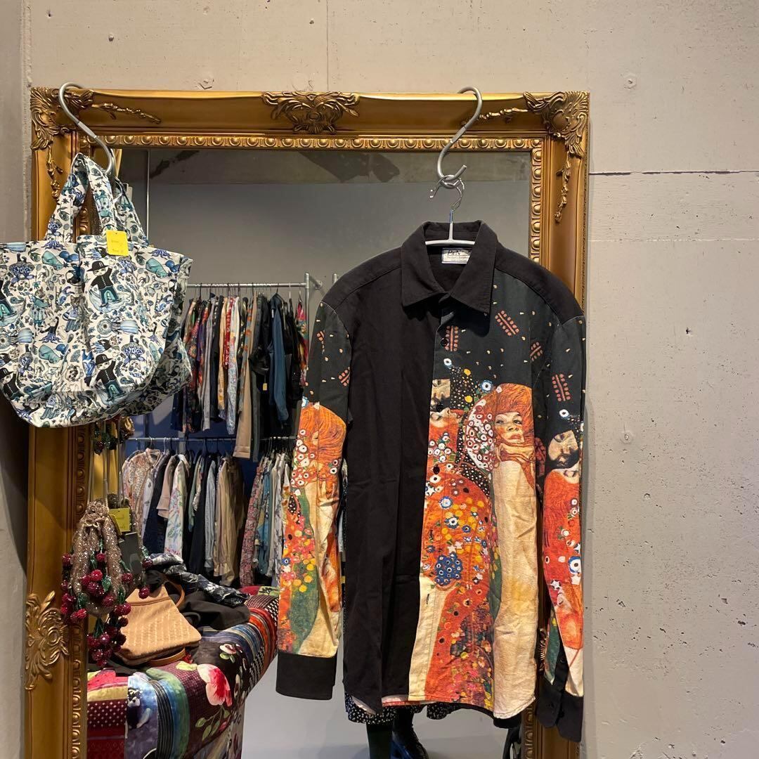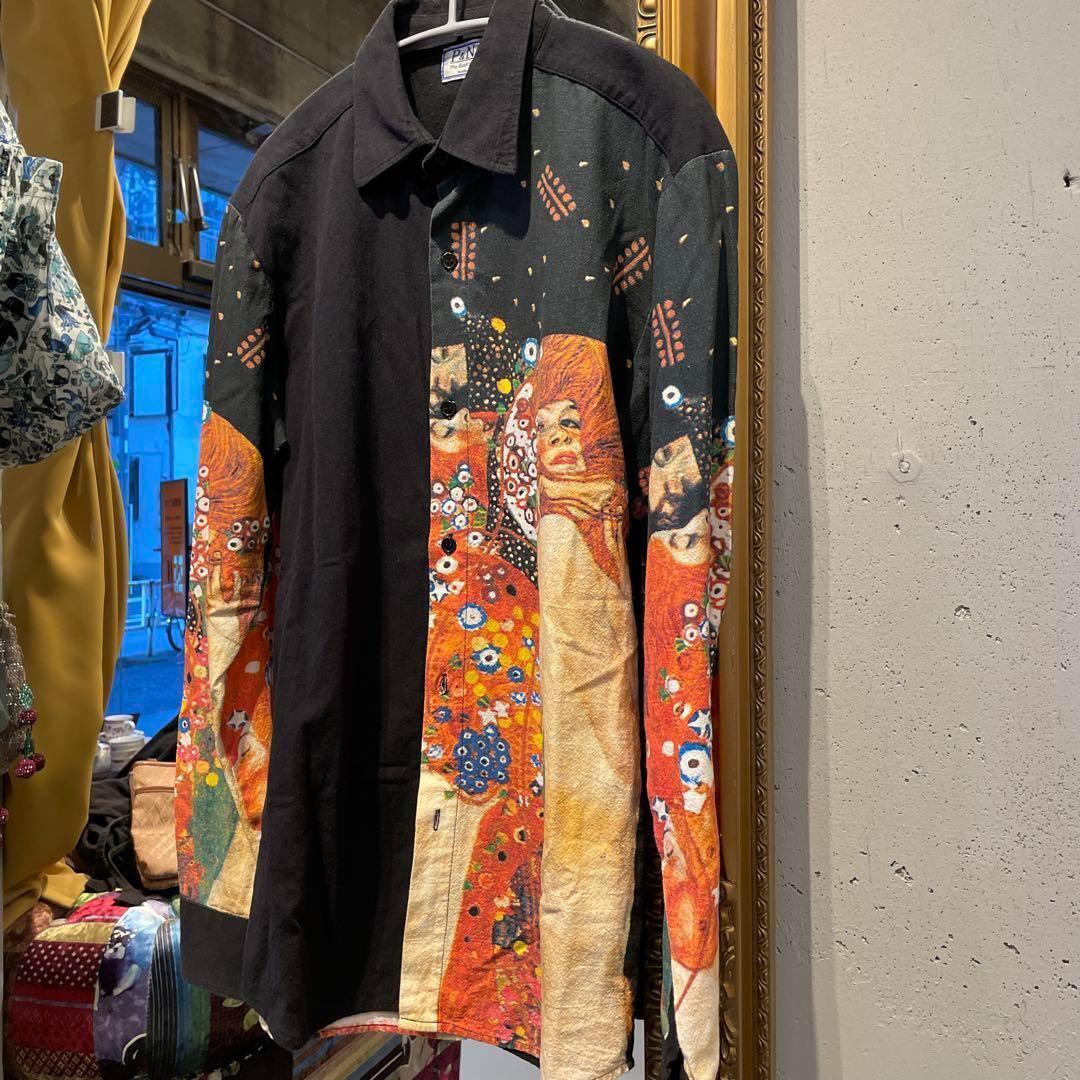 @ ユニセックス アート クリムト 接吻 花柄 総柄 シャツ トップス 長袖