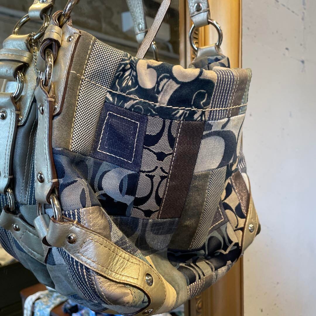 @ コーチ COACH デニム バッグ トート ハンド パッチワーク ロゴ