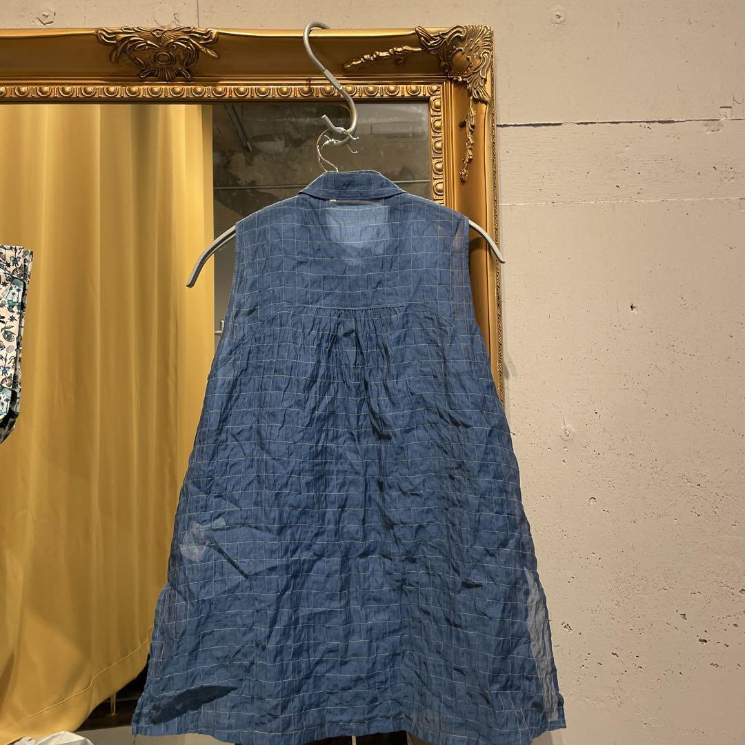 @ 総柄 ブラウス シャツ ノースリーブ チェック 透け感 シアー 涼しい