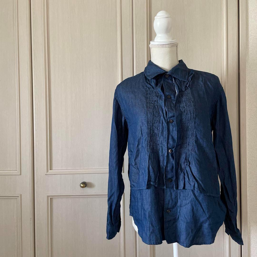 43 プランテーション plantation デニム シャツ フリル 青 紺