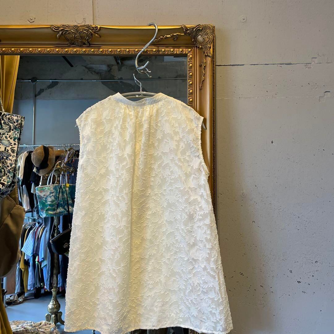 @ BEAMS ビームス 刺繍 花柄 総柄 ブラウス シャツ ノースリーブ 白