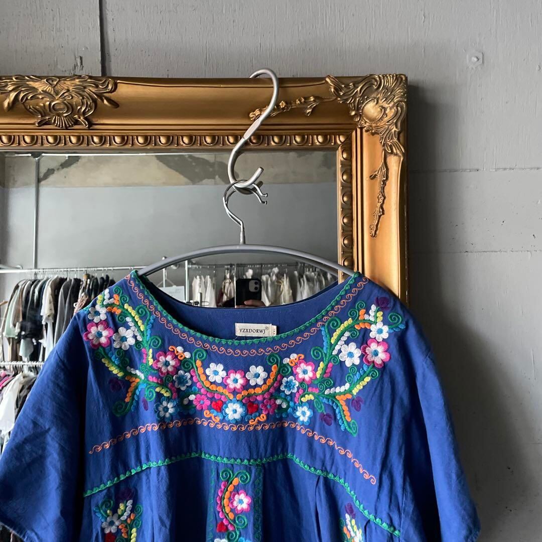 @ メキシカン 刺繍 花柄 総柄 ブラウス シャツ 半袖 3L