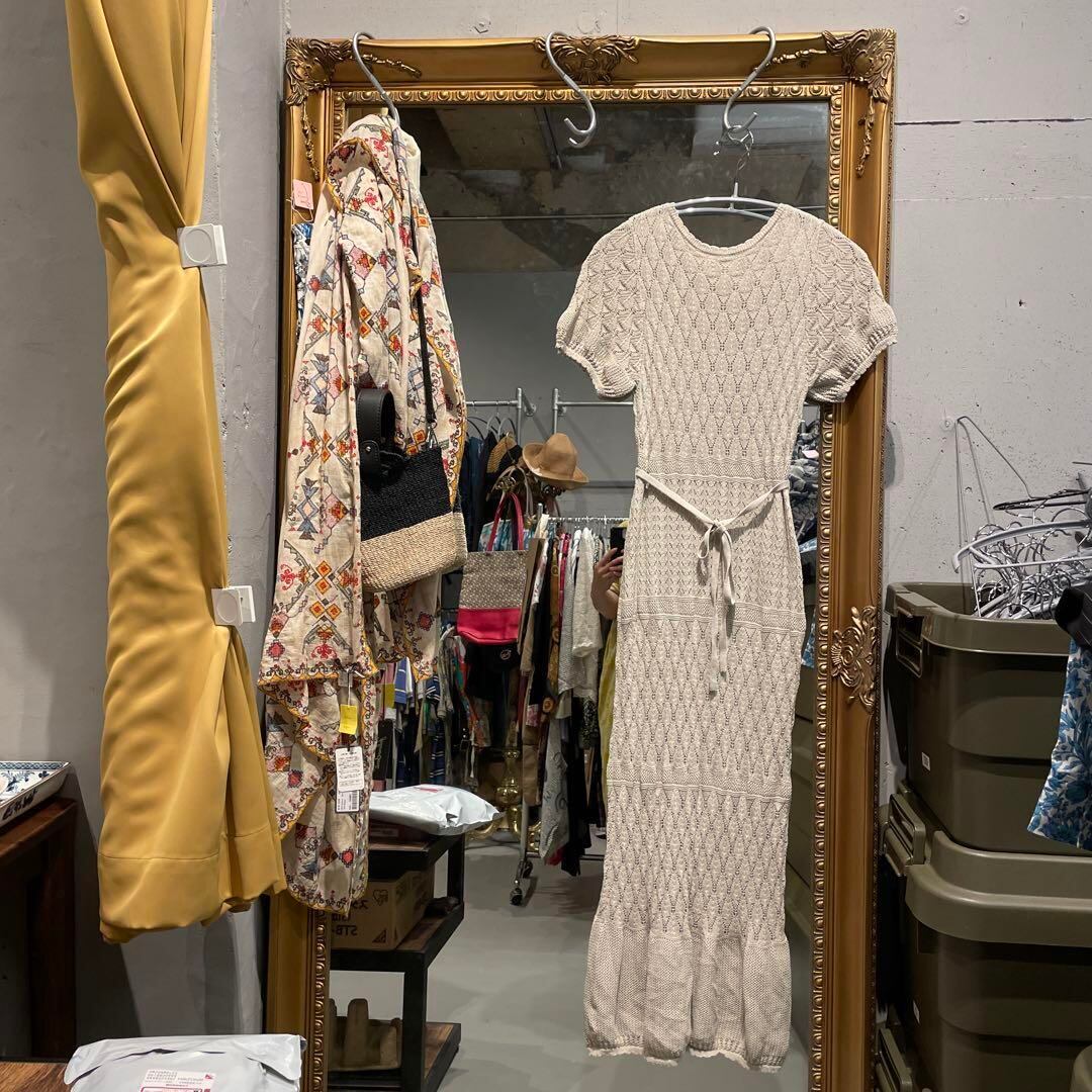 @ ナイロ nairo レース 半袖 サマー ニット ワンピース シャツ ロング