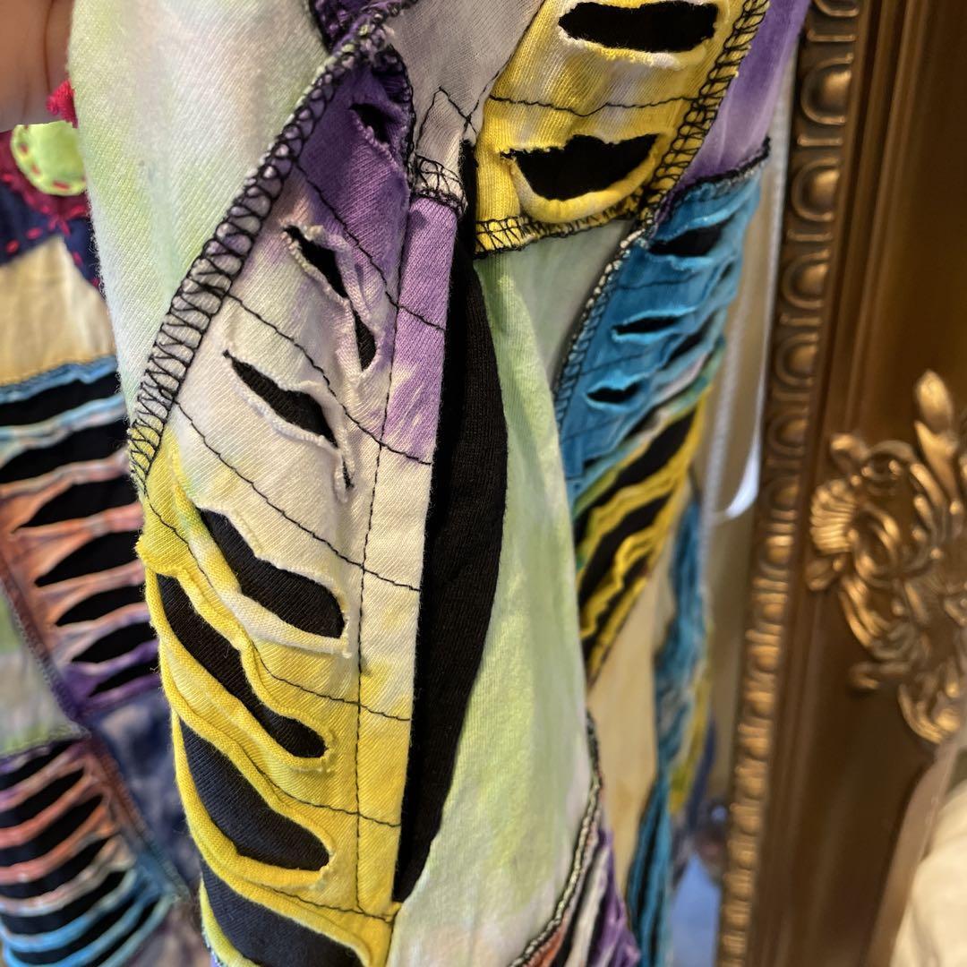 @ 刺繍 パッチワーク 花柄 ワンピース シャツ ロング ノースリーブ