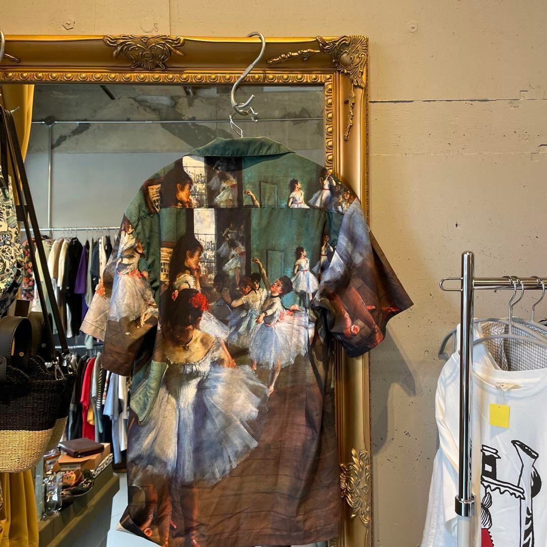@ bastrap 絵画 アート 半袖 メンズ シャツ 総柄 柄シャツ