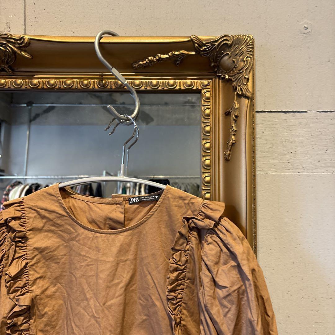 @ ZARA ザラ BASIC ベーシック フリル ブラウス シャツ 半袖