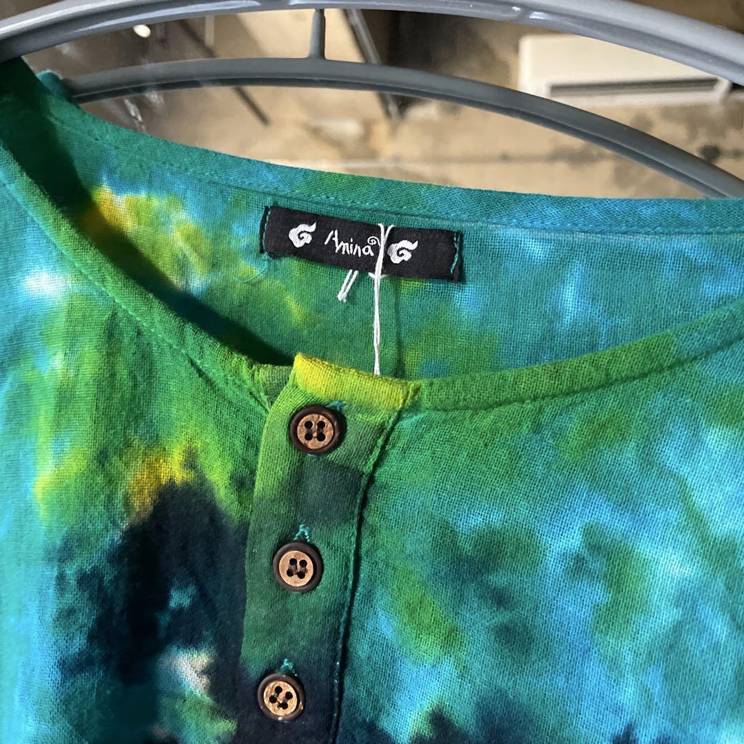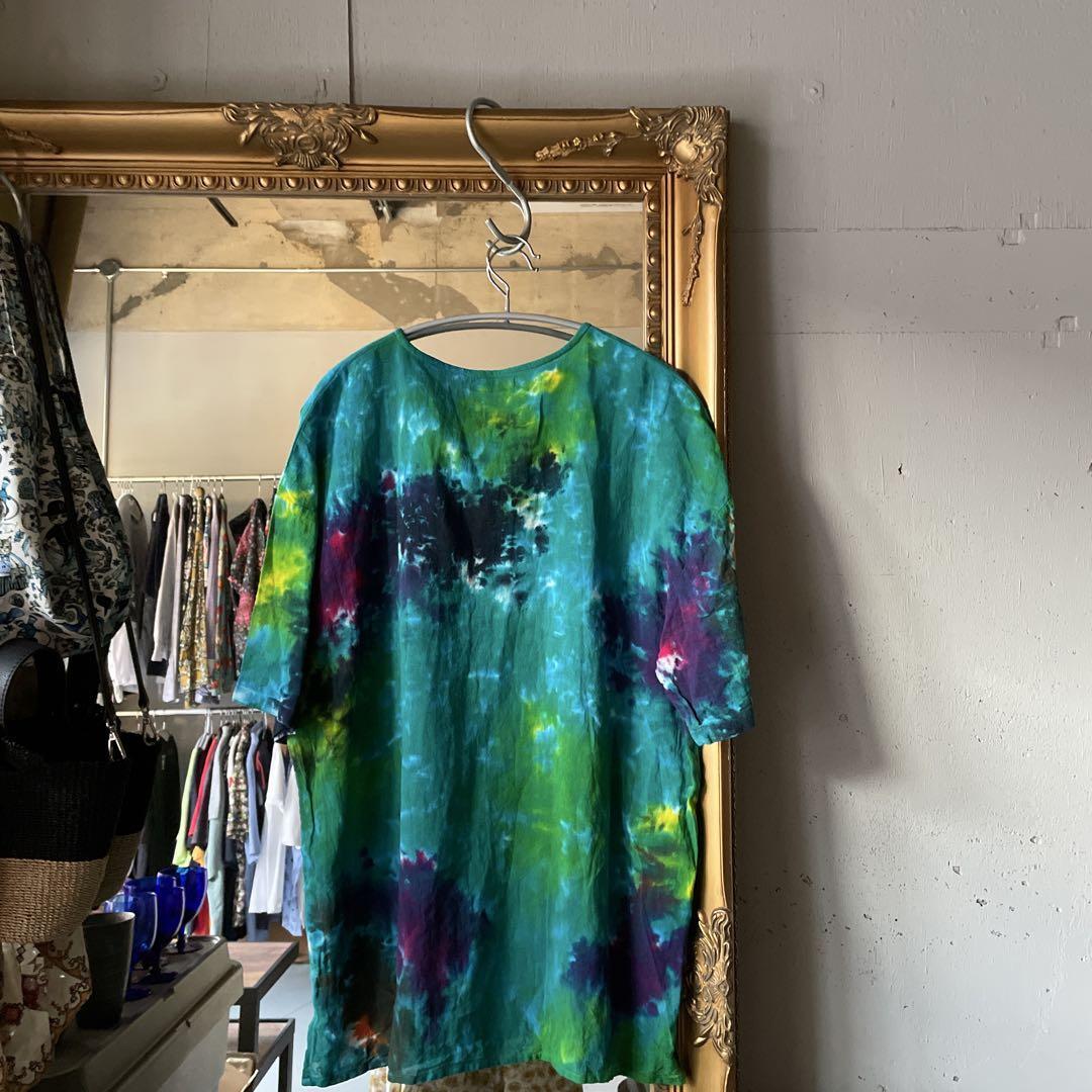 @ アミナ AMINA エスニック タイダイ 花柄 総柄 ブラウス Tシャツ 半袖