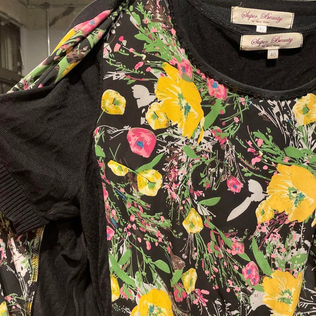 @ スーパービューティー スパンコール 花柄 総柄 カーディガン 長袖