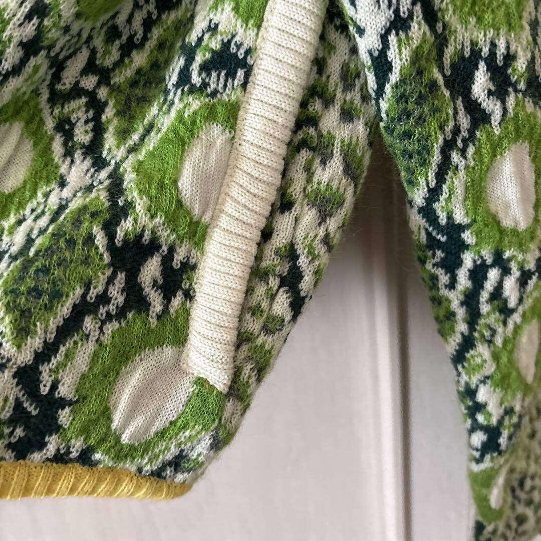 @ M ハナイユキコ YUKIKO HANAI 総柄 ニット アウター ジャケット お呼ばれ デート オフィスカジュアル 食事会 長袖 ジップアップ 可愛い レトロ 上品