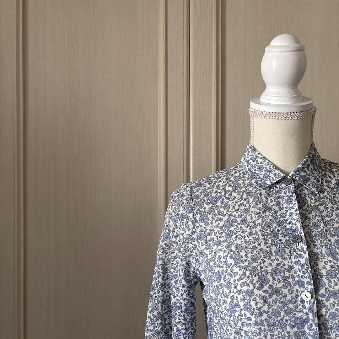 @ レリアン leilian 花柄 総柄 Sサイズ 36 7号 ブルー 青 藍色 ネイビー 紺色 ブラウス シャツ トップス お呼ばれ デート オフィスカジュアル 食事会