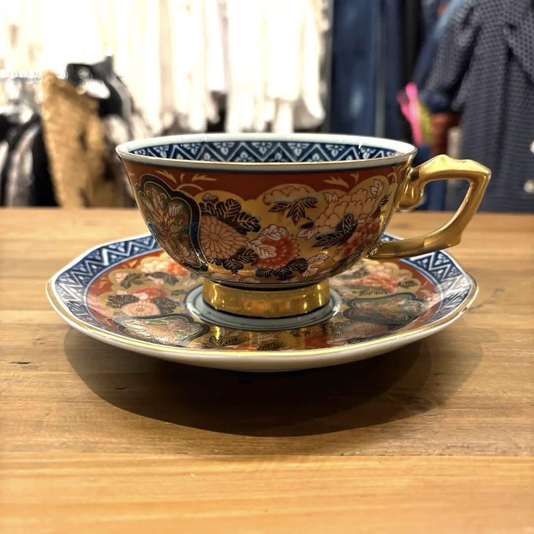 日肥其泉 昭和年製 カップ&ソーサー ゴールド 花柄 金襴手 極錦金彩 古伊万里